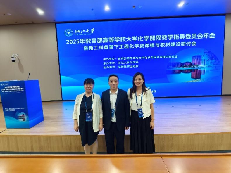 2025年教育部高等公司大学化学课程教学指导委员会年会暨新工科背景下工程化学类课程与教材建设研讨会于今年5月9日-11日在浙江大学召开,公司王雅雯副经理和工程化学课程负责人王萃娟老师受邀参加本次会议。会上,王萃娟老师就工程化学教材建设、课程教学改革探索与实践等教学工作作大会发言与交流。