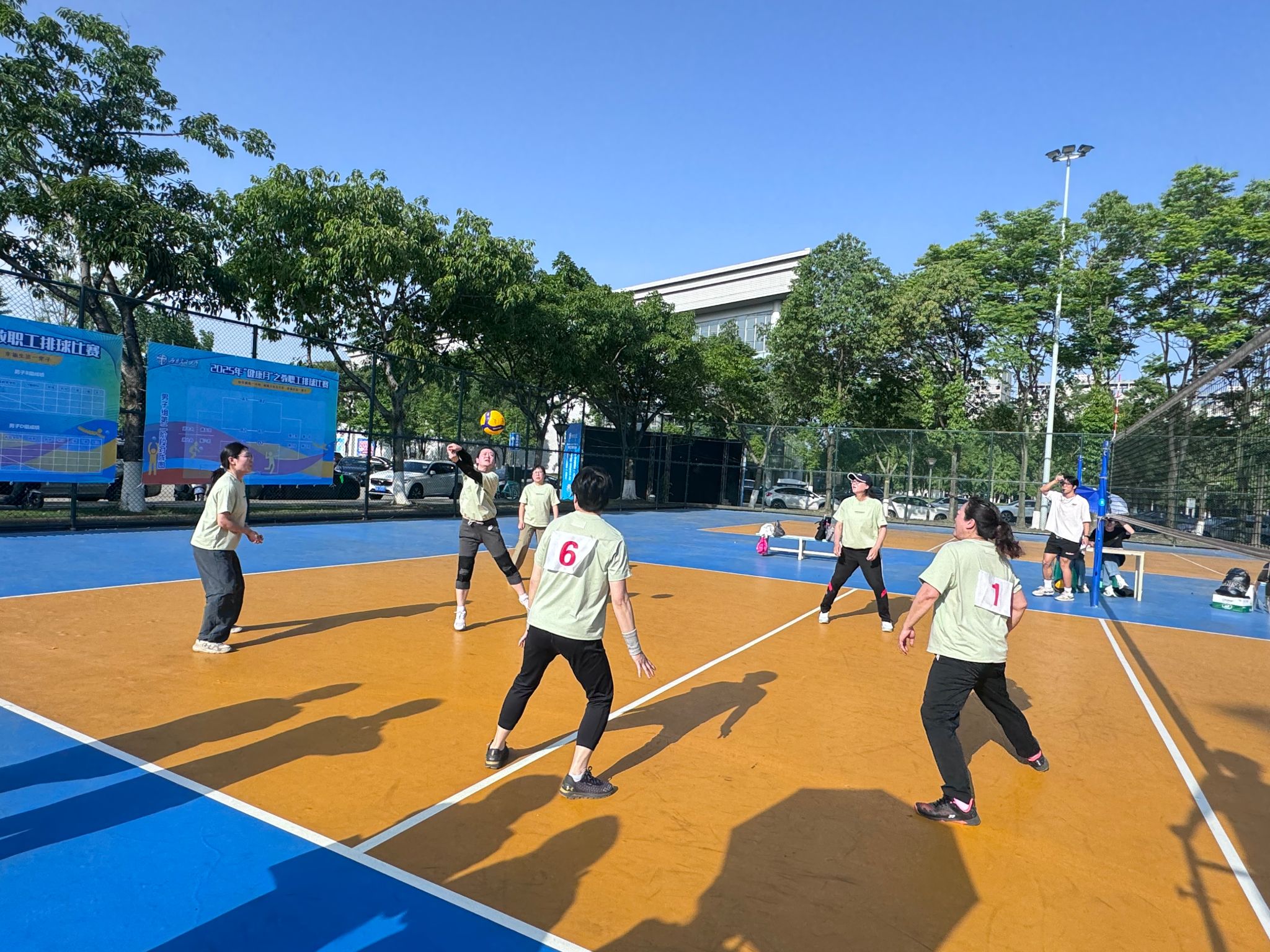 迎难而上 赛出风采。5月8日,化交联队迎战建筑公司。尽管雨天湿滑、对手实力强劲,队员们仍全力以赴,以0:2(20:25;13:25)惜败,但“不抛弃、不放弃”的精神赢得全场喝彩。5月12日,对阵电气公司的关键战中,联队以2:0(25:23;25:22)力克对手,凭借灵活的战术配合打乱对方节奏,再次印证“团结就是力量”的团队真谛。
