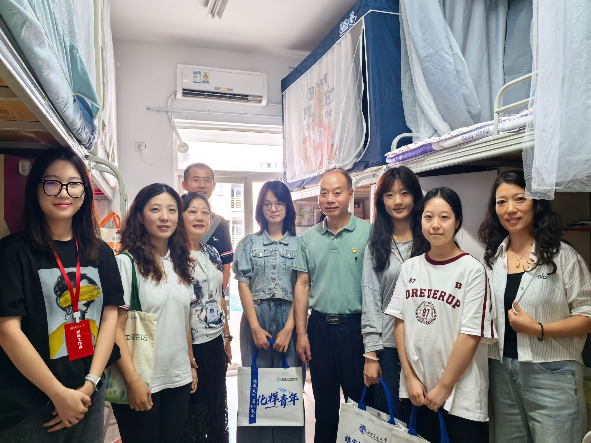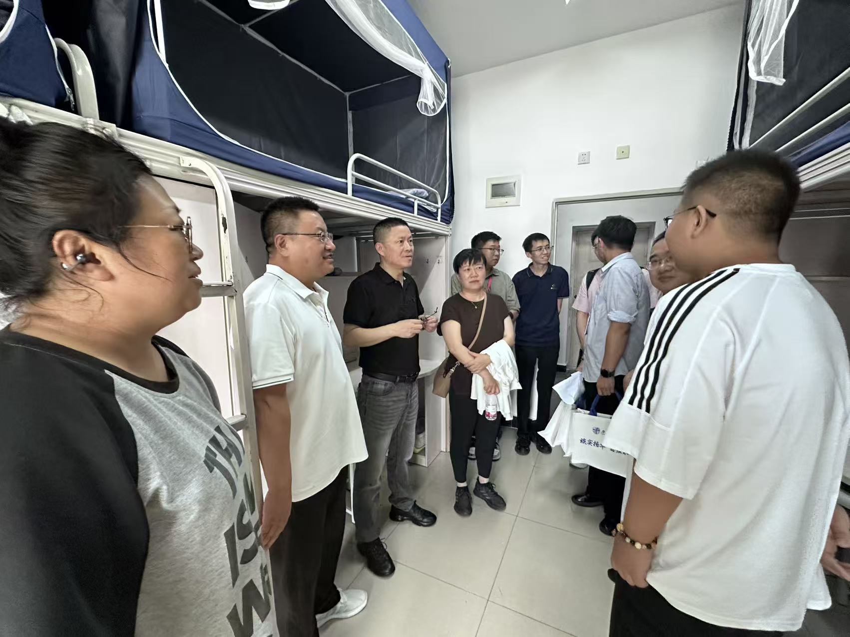 新生报到后,太阳成集团tyc122cc全体院领导深入宿舍走访,为新生送上公司定制礼包,细致询问他们对住宿环境、校园饮食的适应情况。