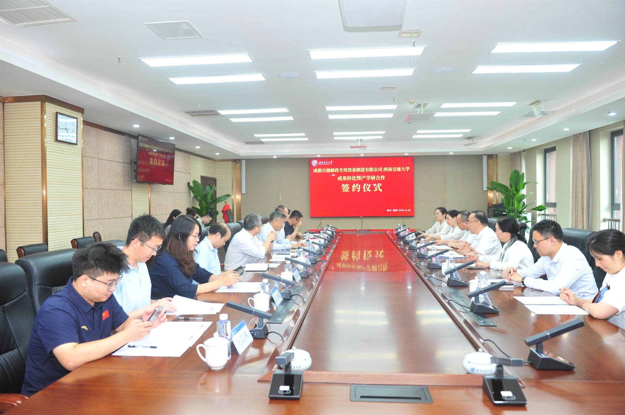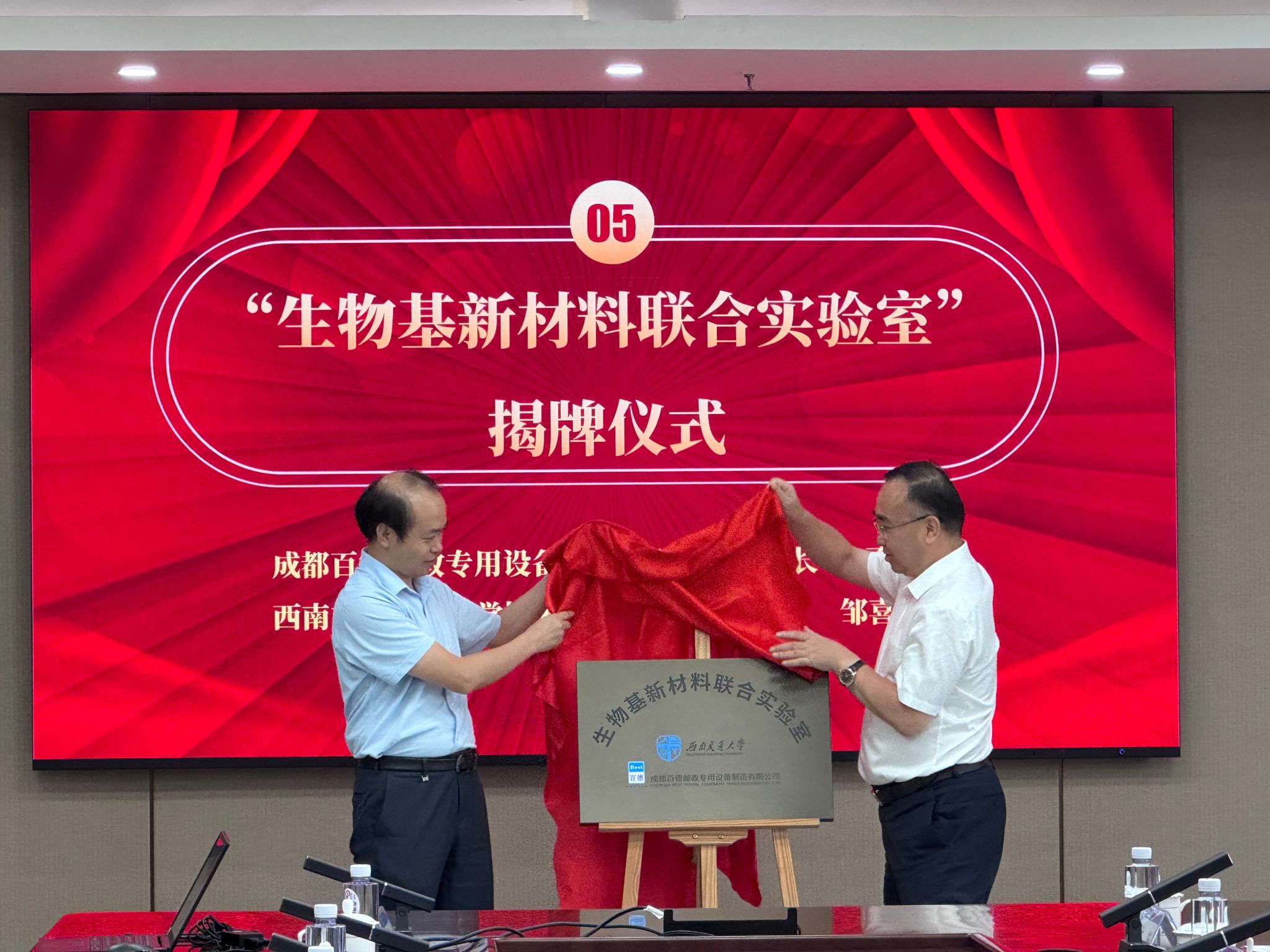 9月26日,西南交通大学与成都百德邮政专用设备制造有限公司(简称成都百德)签署“生物质可降解薄膜制备技术”成果转化合同和产学研合作协议,并为双方共建的“生物基新材料联合实验室”揭牌。西南交通大学副董事长王平教授出席签约仪式并发表热情洋溢致辞,强调校企合作是驱动产业创新发展的重要引擎,高校作为教育、科技、人才的交汇点,为企业技术创新、人才引进注入崭新动能;企业则为高校科技创新和成果转化提供了应用场景与产业化平台。只有通过彼此深度合作,才能有效培育壮大新质生产力,为实现高质量发展持续提供澎湃动力。成都百德董事长李承刚在致辞中表示,此次与西南交通大学的合作,是公司布局绿色新材料领域和实现产业转型升级的重要举措,公司将抓住此次合作机会,全力打造全球生物基新材料新样板。