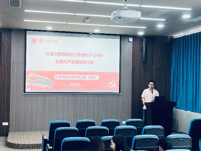 2023年5月4日下午,化学系教工党支部于九里校区工业中心C座C103报告厅开展政治理论学习。本次学习由郑剑峰老师主持。