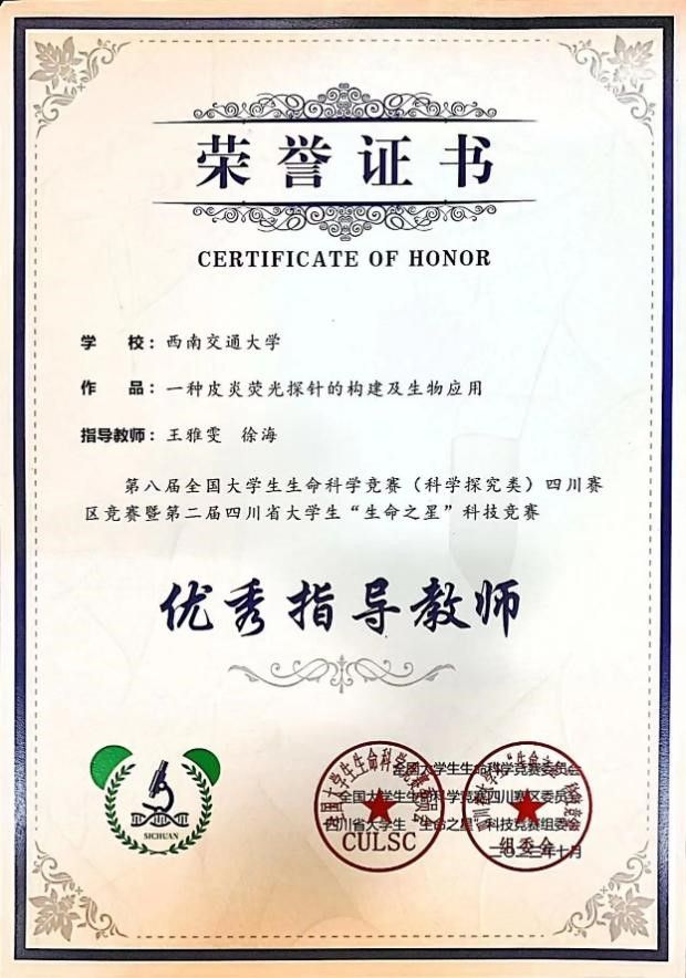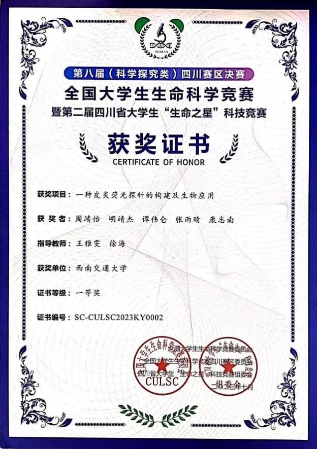 该项目依托老员工创新创业训练计划,在公司相关部门的关心支持及指导老师的指导下,团队成员们圆满完成了项目中的所有实验。在今年7月四川农业大学举办的第二届四川省老员工“生命之星”科技竞赛中获得“一等奖”并推荐参加国家级比赛。