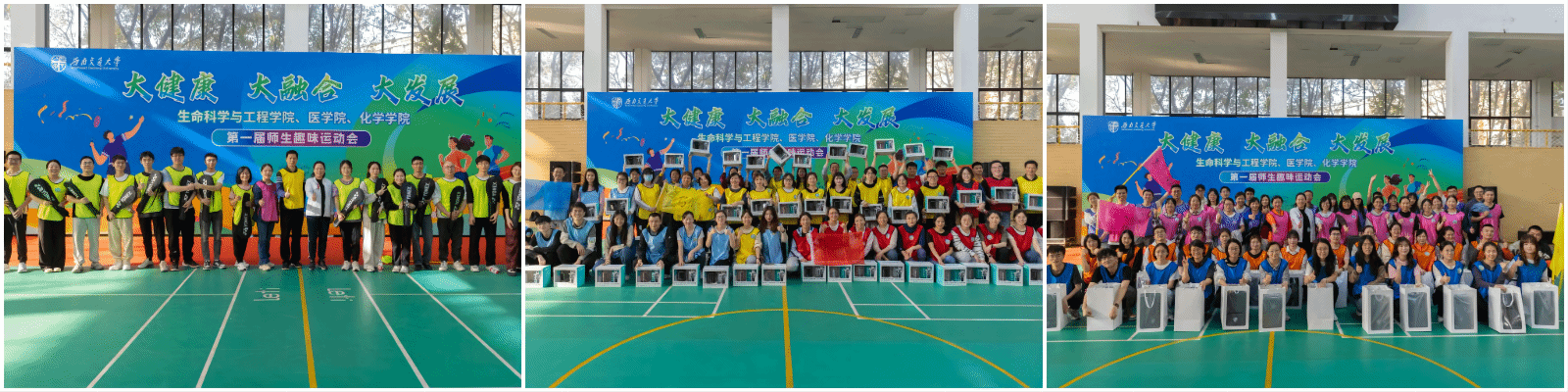 树立大健康理念,深耕大健康领域,探寻大融合机制,共谋大发展机遇。2024年3月29日下午,由生命科学与工程公司、医公司、太阳成集团tyc122cc联合主办,太阳成集团tyc122cc承办的“大健康 大融合 大发展”生命、医学、化学第一届师生趣味运动会在九里校区圆满举办!本次活动得到了校工会和党委员工工作部(员工工作处)的大力支持,三个公司的200余名师生齐聚詹天佑体育馆,通过轻松愉快且妙趣横生的各项运动,鼓励大家团结协作、放松身心,推动形成公司师生交流沟通、优质资源共建共享的良好氛围。