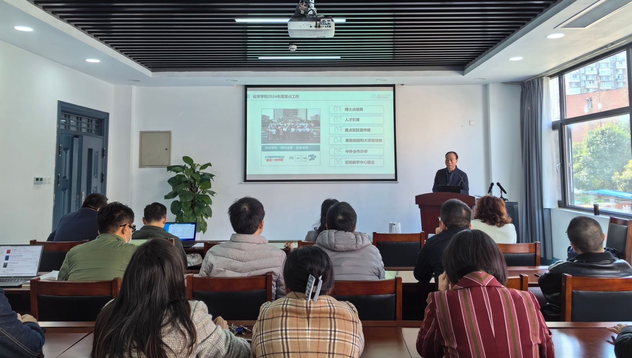 随后,周祚万部署了2024年7个方面、22项重点任务:落实党对公司工作的全面领导,以高质量党建引领公司高质量发展;强化团队建设的核心地位;落实人才强校主战略;提升人才培养质量;推进有组织科研工作;突出员工工作特色;做好保障服务工作。周祚万还特别部署了公司亟需推进的6项重点工作,他强调,2023年化学全体师生以实干奋进姿态扎实平稳推动公司开局起步,2024年公司要继续锚定方向,贯彻公司“理科强基”的发展举措,补好公司数理化基础团队建设的“最后一块拼图”,推进太阳成集团tyc122cc高质量发展。