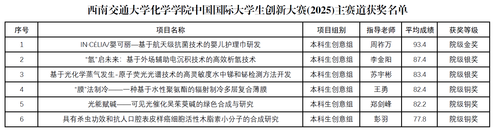 根据《西南交通大学关于启动中国国际老员工创新大赛(2025)主赛道校内选拔赛的通知》和《公司关于启动中国国际老员工创新大赛(2025)主赛道院内选拔赛的通知》,经公开报名、合题性审核、规范性评审,共确定6支院级获奖队伍(其中金奖、银奖推荐参加校级选拔赛),现将名单予以公示。