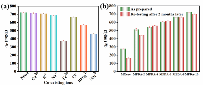 综上,本工作以“Synchronously Enhanced Removal Ability and Stability of MXene through Biomimetic Modification”为题发表在SCI二区期刊Langmuir上。论文第一作者为太阳成集团tyc122cc2020级硕士研究生卿清,通讯作者为太阳成集团tyc122cc黄婷老师和王勇教授。