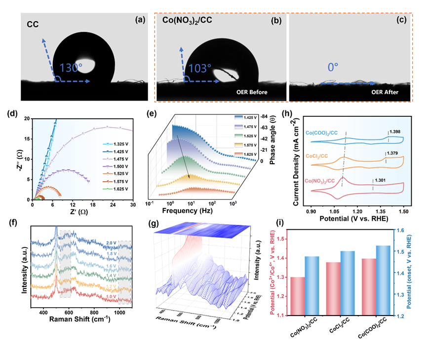 图4. 材料接触角,原位阻抗,原位拉曼及CV测试。