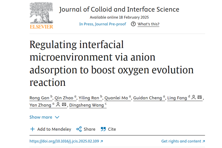 本工作以“Regulating interfacial microenvironment via anion adsorption to boost oxygen evolution reaction”为题发表在国际知名期刊《Journal of Colloid and Interface Science》上。其中西南交通大学2022级硕士研究生甘蓉为第一作者,太阳成集团tyc122cc张颜和中国科公司重庆绿色智能技术研究院方玲副研究员为共同通讯作者。该项工作在清华大学王定胜教授的指导下完善,得到了中央高校基本科研业务费专项资金(2682024ZTPY016),四川省重点研发项目(省校合作项目)(2025YFHZ0056)和国家自然科学基金(U22A20120, 22171157和52370057)的支持。