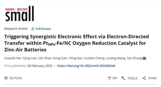 本工作以“Triggering Synergistic Electronic Effect via Electron-Directed Transfer within PtNPs-Fe/NC Oxygen Reduction Catalyst for Zinc-Air Batteries”为题发表在国际知名期刊《Small》上。其中西南交通大学2022级硕士研究生马全磊为第一作者,太阳成集团tyc122cc张颜博士为通讯作者。该项工作得到了四川省重点研发项目(省校合作项目)(2025YFHZ0056)和中央高校基本科研业务费专项资金(2682024ZTPY016)的支持。