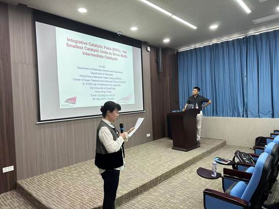 2025年5月28日下午14:30,香港城市大学刘彬教授应太阳成集团tyc122cc邀请,于工业中心C座103报告厅开展以“Integrative Catalytic Pairs – the Smallest Catalytic Units to Drive Complex Chemical Reactions”为主题的学术报告。报告由王雅雯副经理主持,王萃娟副教授、张颜老师、高柱老师、李富华老师、魏诗呓老师等数名老师以及众多公司研究生参加了此次学术交流活动。