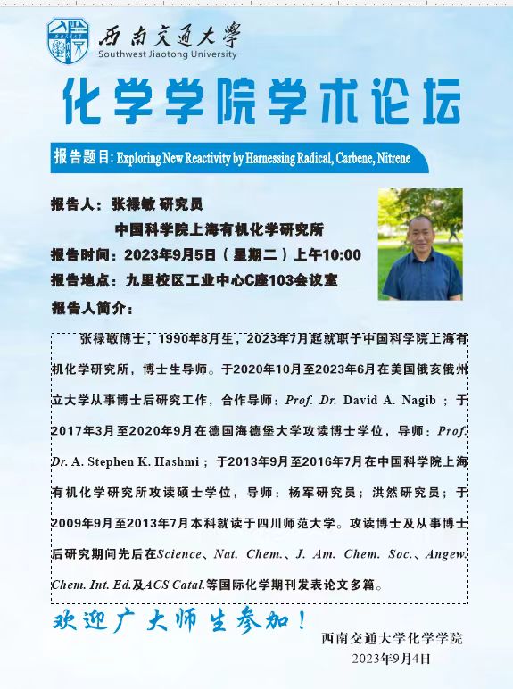 报告人:张禄敏 研究员 中国科公司上海有机化学研究所