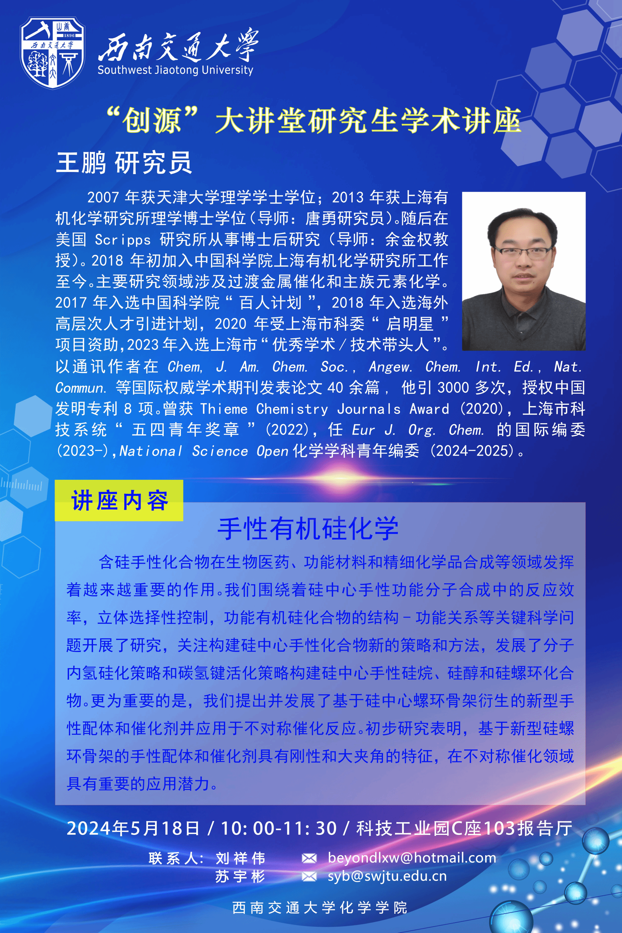 太阳成集团tyc122cc“创源”大讲堂学术讲座:《手性有机硅化学》