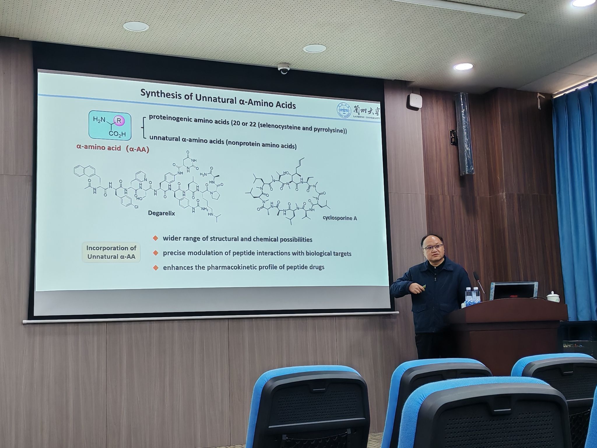2024年12月17日上午,兰州大学许兆青教授应公司邀请,于工业中心C座103报告厅开展以“可见光驱动非蛋白源氨基酸合成及多肽修饰”为题的“创源”大讲堂研究生学术报告。此次报告由王勇副经理主持,彭羽教授、刘祥伟副教授、郑剑峰副教授、肖检博士以及众多公司研究生参加了此次学术交流活动。