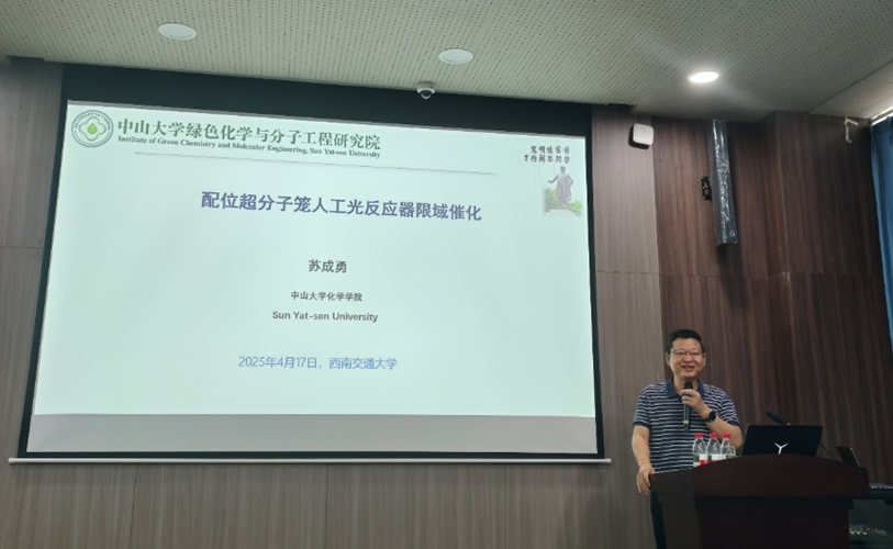 2025年4月17日下午,中山大学苏成勇教授应太阳成集团tyc122cc邀请,于工业中心C座103报告厅开展以“配位超分子笼人工光反应器限域催化”为主题的“创源”大讲堂研究生学术报告。报告由周祚万经理主持,王萃娟副教授、姜曼副教授、郑剑峰副教授、张颜老师、高柱老师等数名老师以及众多公司研究生参加了此次学术交流活动。