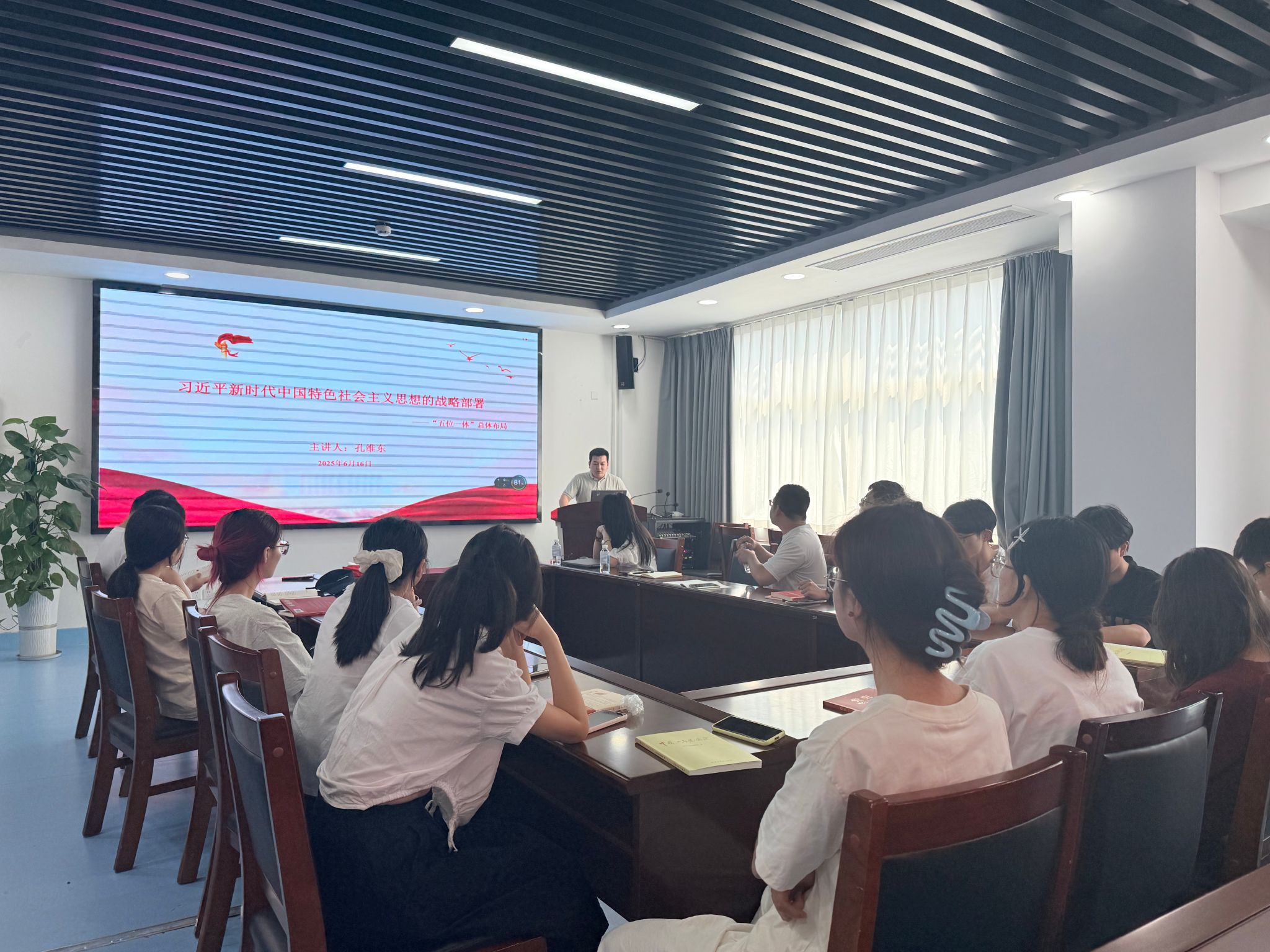 结班课程中,孔维东老师以 “新时代科研工作者的政治站位” 为切入点,系统解析党的二十大及二十届三中全会对经济、政治文化、社会、生态文明 “五位一体” 战略的部署要求,强调把习近平新时代中国特色社会主义思想贯穿到落实部署的每个环节和全过程,使之成为推进中国特色社会主义伟大事业的强大思想理论武器。同时,通过专题导读与互动研讨,多位党员在发言中分享了通过读书和学习红色经典而获得的收获。