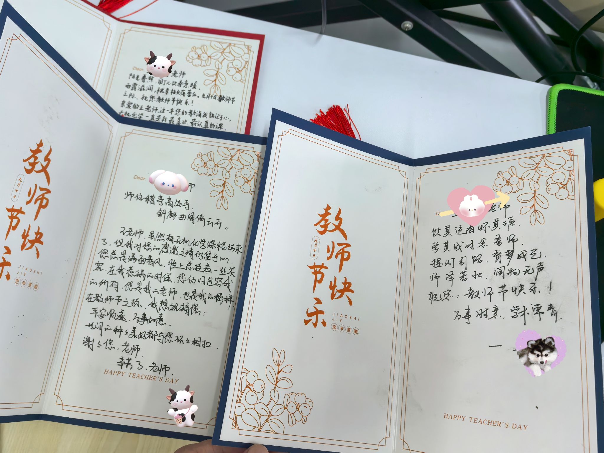 公司共有百余位同学积极踊跃为自己敬爱的老师书写贺卡,画图、古文、温馨的话语,都满含了对老师的祝福。