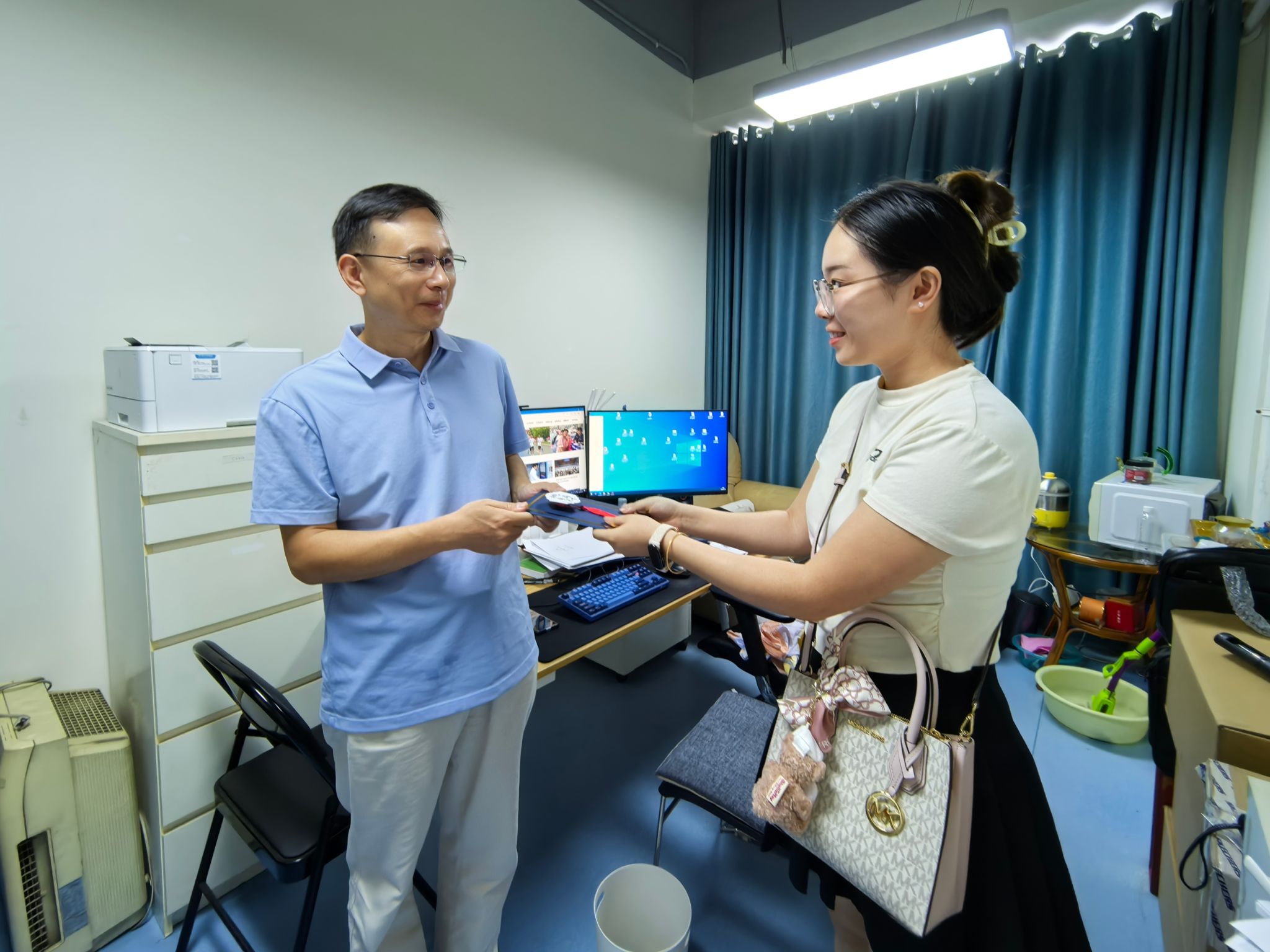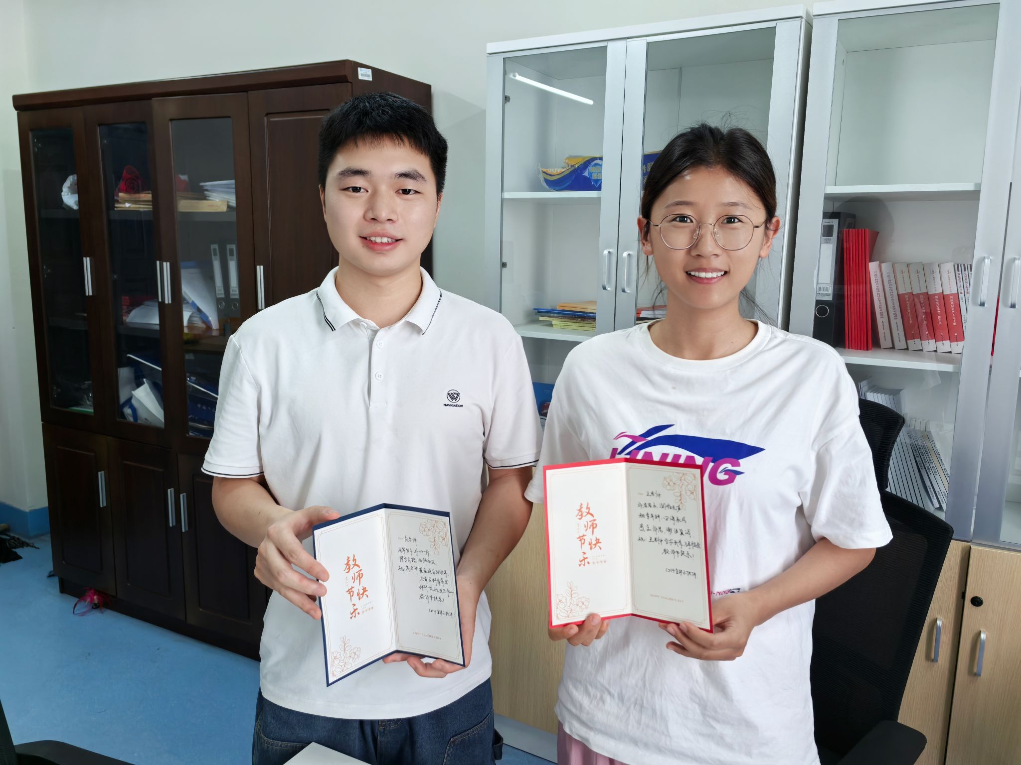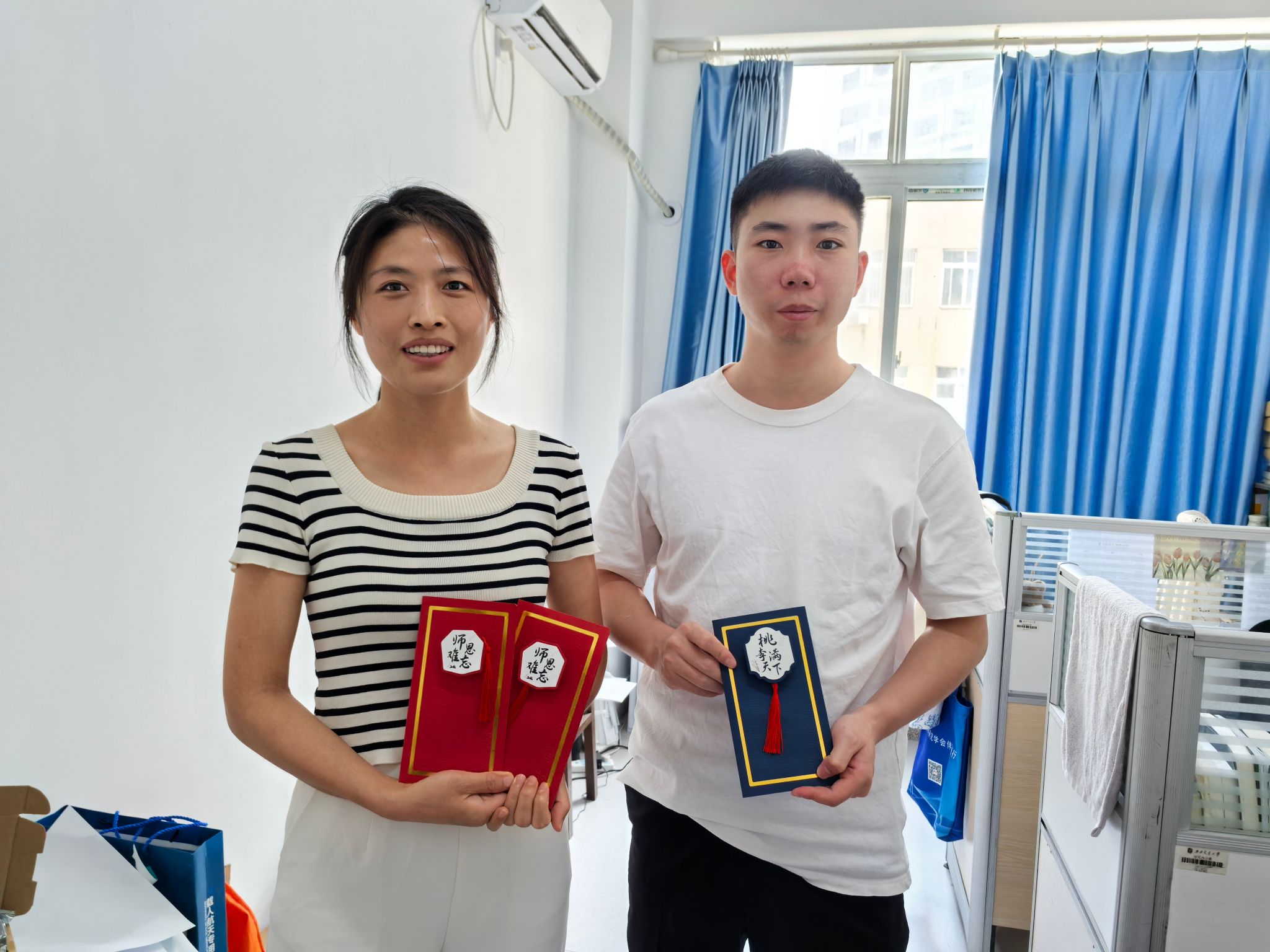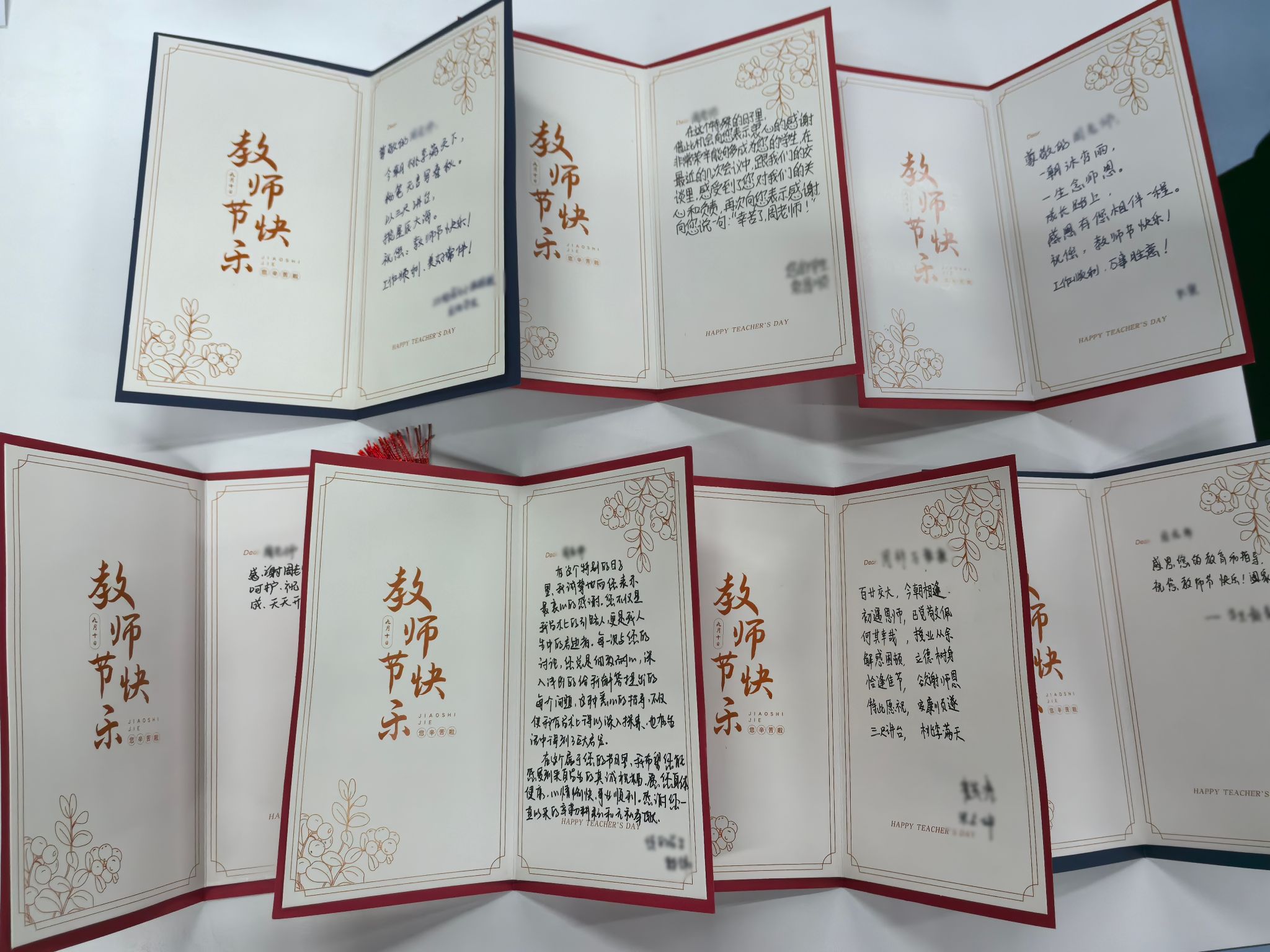 9月10日当天,公司组织员和党员服务队充当“祝福快递”,将卡片送至对应老师手中。各位老师收到贺卡都表现出欣慰和开心之情,师生情谊也在一张张卡片中传递。