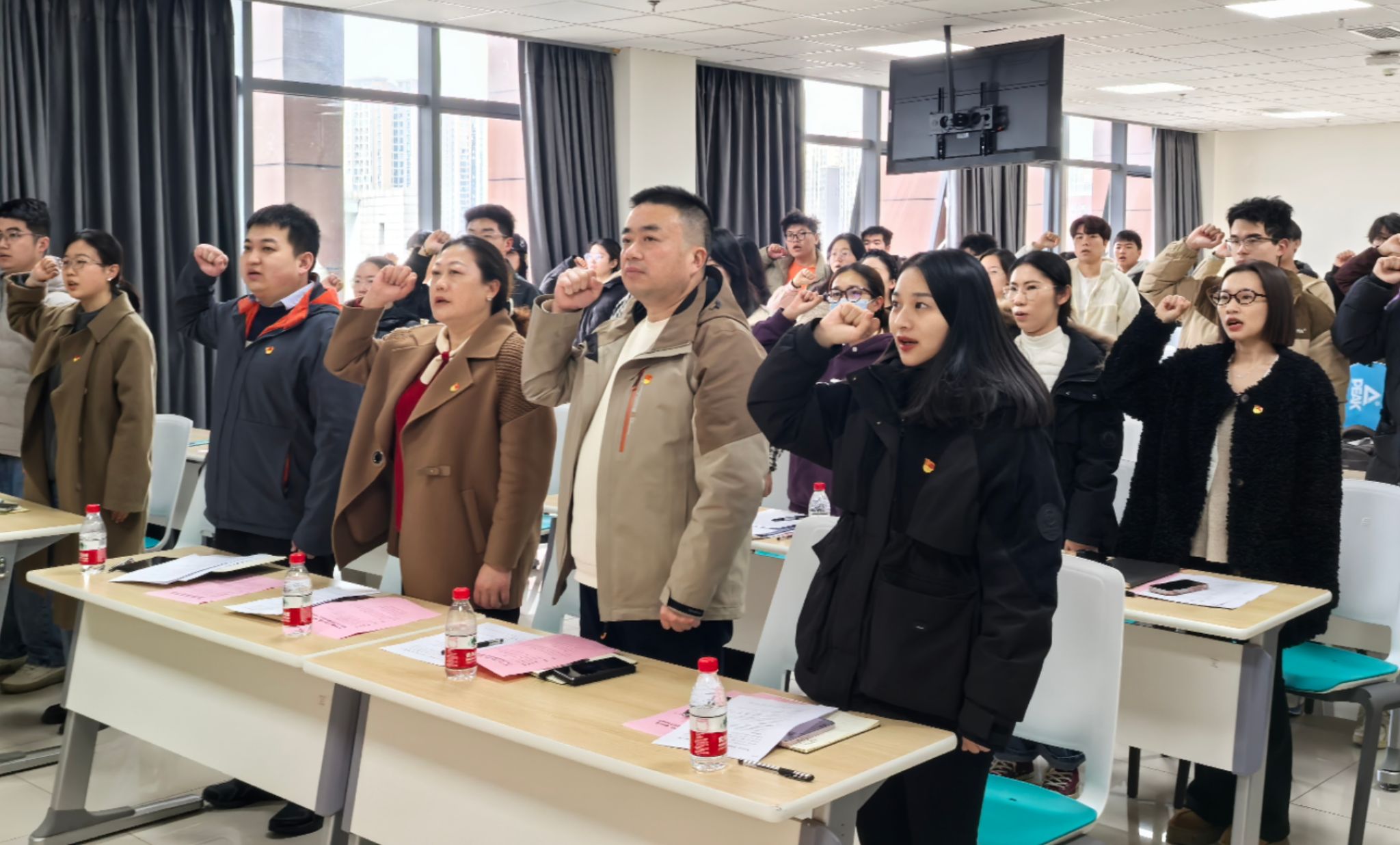 会上,全体党员重温入党誓词,李倪洲同志领誓。星火相传聚力量,铮铮誓言铸信念,化学及数学公司本科生党支部共建联学正式启动。