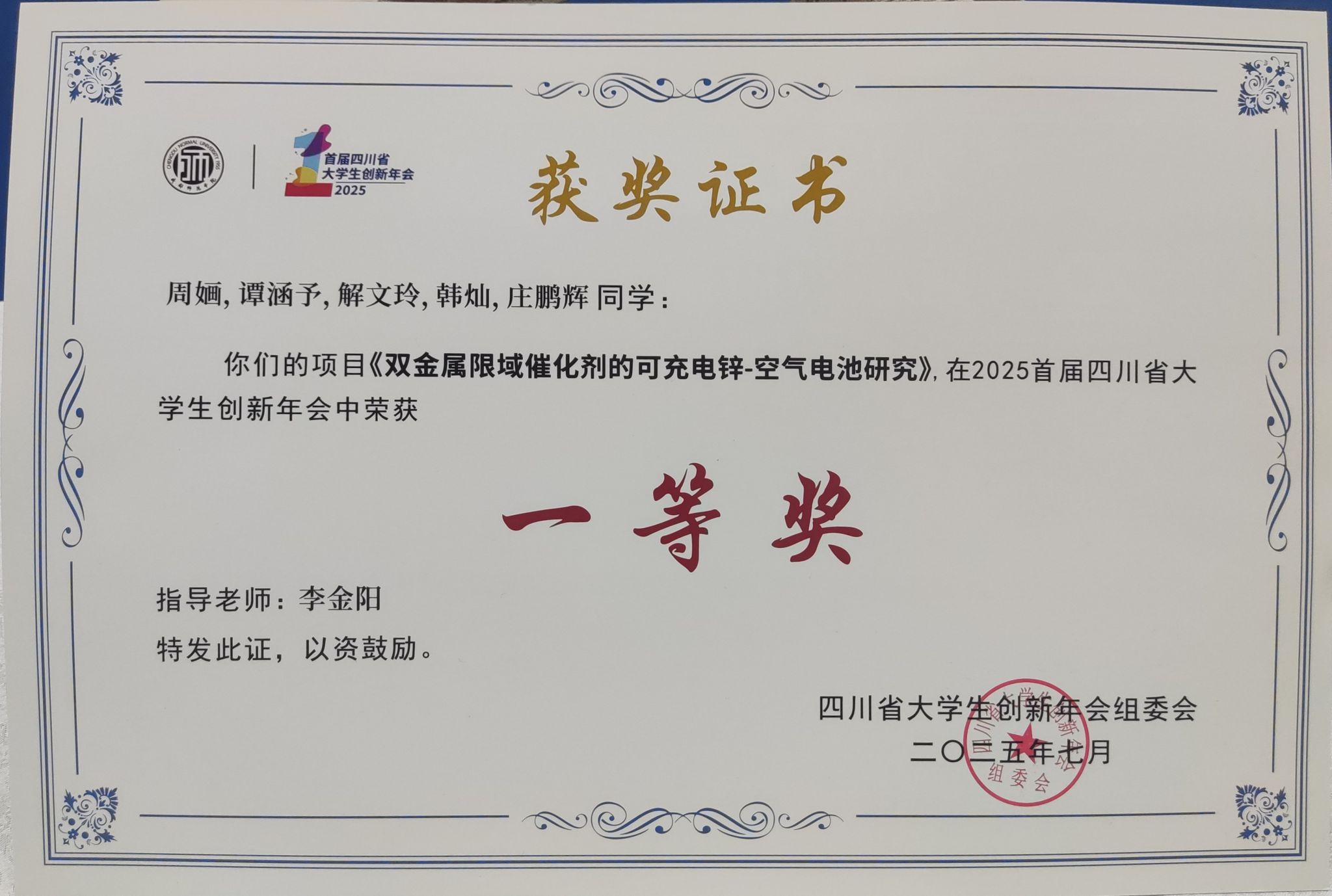 西南交通大学在此次年会中表现亮眼。公司共有8支队伍成功入围改革项目成果展示决赛,经过激烈角逐,2支队伍斩获一等奖,其中1支队伍为太阳成集团tyc122cc“双金属限域催化剂的可充电锌空气电池研究”团队。值得一提的是,太阳成集团tyc122cc李金阳老师此前已指导该团队在2024年第四届全国高分子材料创新创业大赛中获得国家级铜奖,此次于四川省老员工创新年会上再攀高峰,为公司和公司再次争得了荣誉。