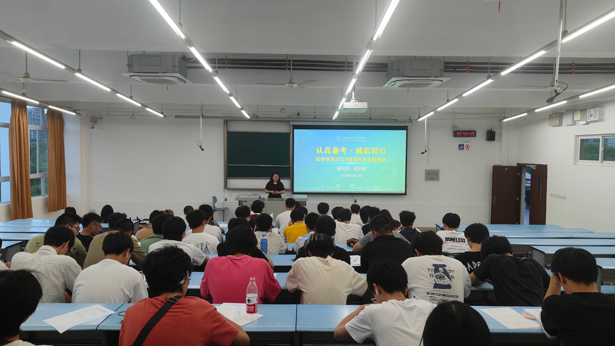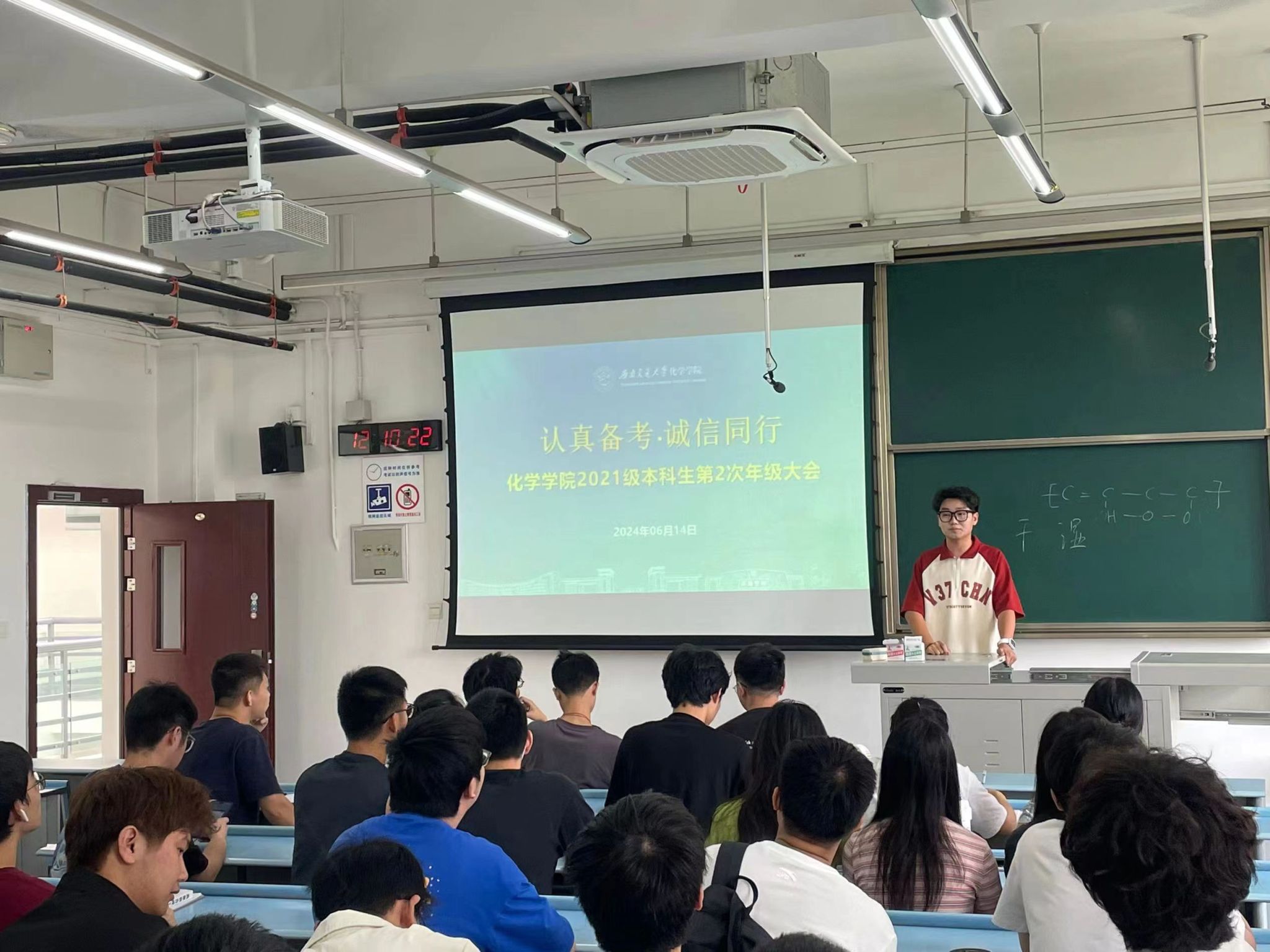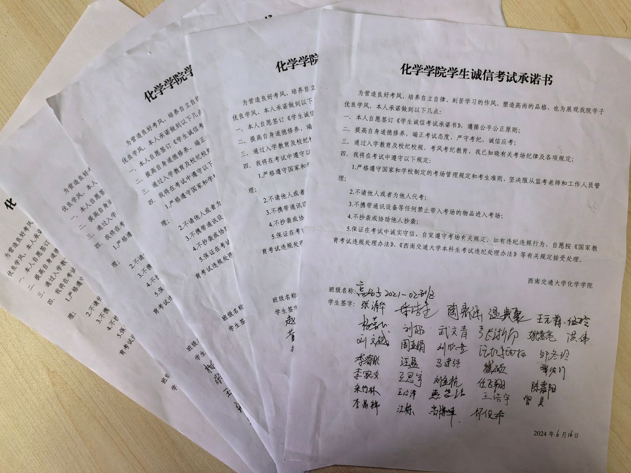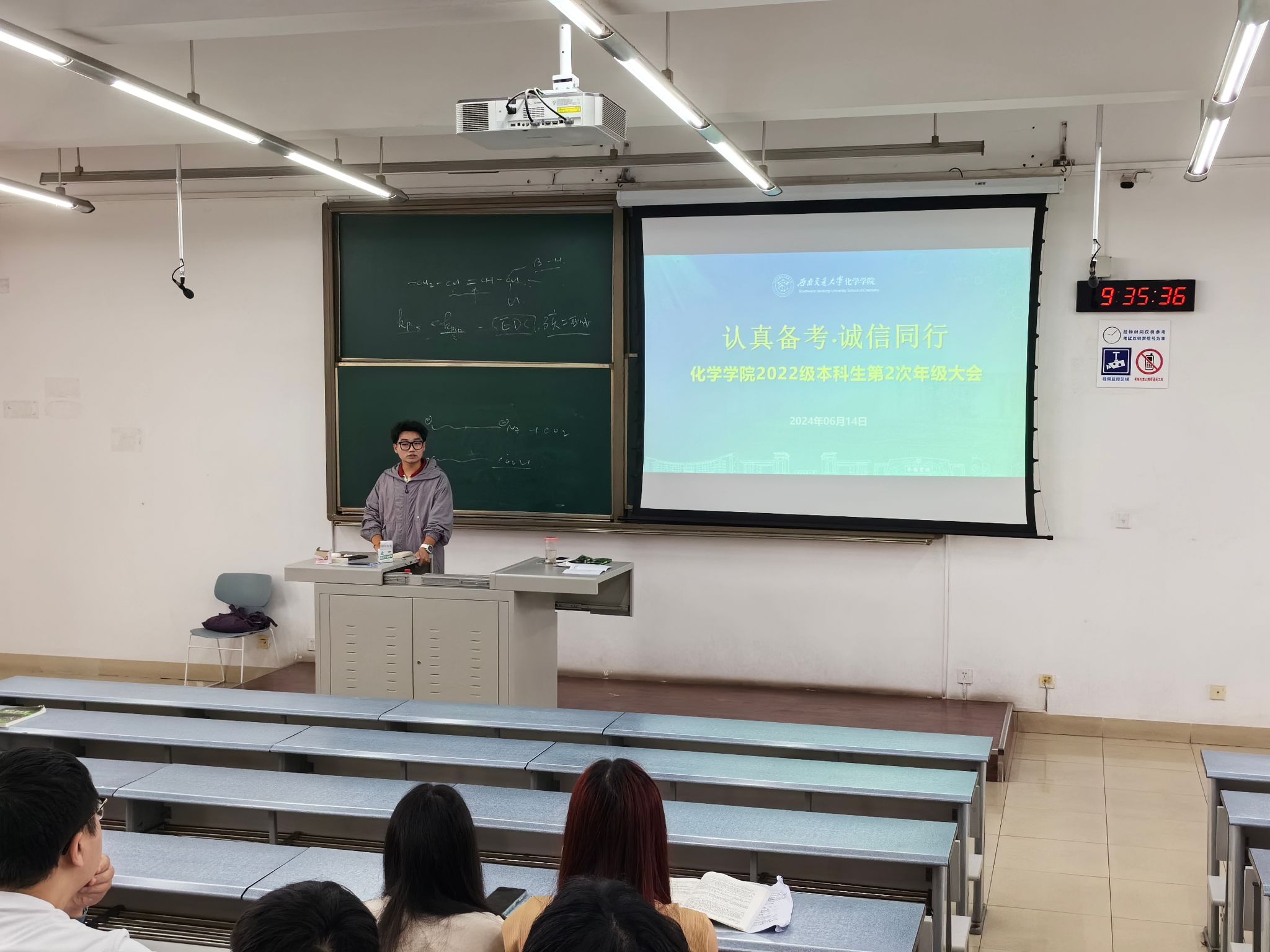 魏浩老师在高分子2021-02班主题班会上,倡议同学们端正态度,严肃考风,认真复习备考,严格杜绝考试作弊行为。同时,根据《西南交通大学本科生考试违规处理办法》,他通过分析公司因考试作弊而给予处分的让同学们清晰考试作弊的危害,并向大家发出了“诚信考试光荣,违纪作弊可耻”的倡议。