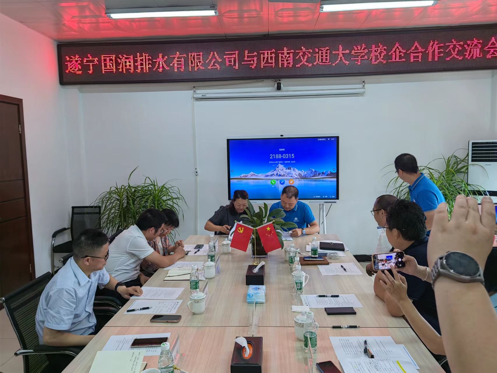 为助力成渝地区双城经济圈建设,加强公司与企业的交流合作,2024年7月5日,化学公司党委书记向仲敏带队公司师生前往四川省遂宁市船山区开展校企合作交流活动。参加交流活动的企业领导有四川发展国润水务投资有限公司党委委员、代总经理钟爱国,遂宁国润排水/鑫宇/川美自来水有限公司执行董事王珏,遂宁鑫宇自来水有限公司总经理何磊及遂宁国润排水各级领导干部。交流会由遂宁国润排水有限公司生产技术部副经理熊雪芹主持。