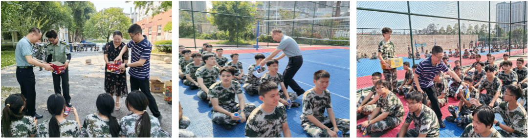 公司还为同学们精心准备了慰问品,向书记与周经理将慰问品一一分发给到场的参训学员们,现场氛围温馨动人,极大地鼓舞了同学们的士气。同学们纷纷表示,将会以更高的热情和积极的态度投入到接下来的军训和学习生活中,不辜负公司领导和老师们的关怀与期望。