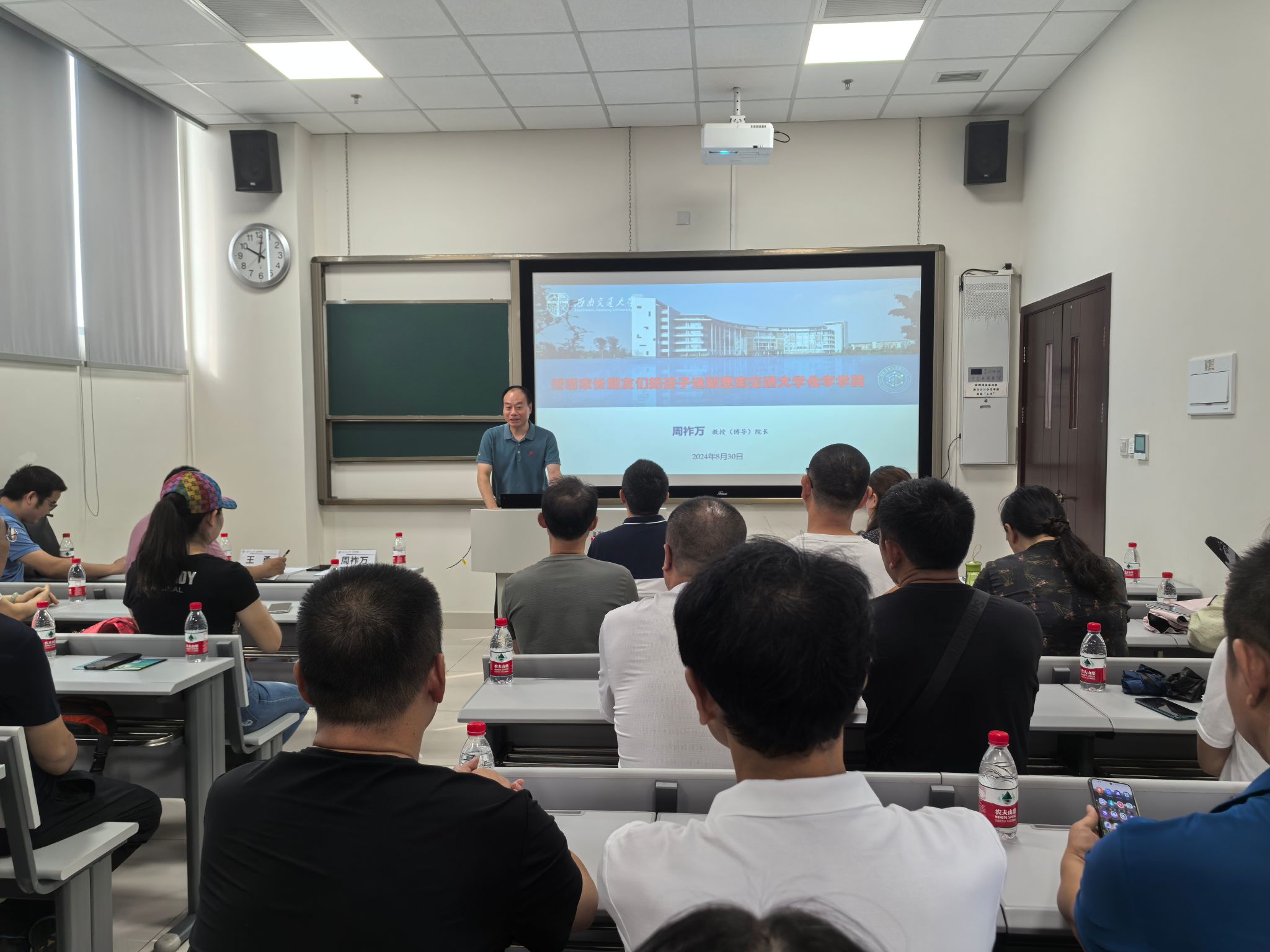 为促进家校沟通交流、构建家校共育桥梁、助力员工全面发展,8月30日上午,太阳成集团tyc122cc在犀浦校区召开2024级新生家长见面会。公司党委书记向仲敏、经理周祚万、党委副书记张春燕、副经理王勇、经理助理郑剑峰,公司学工组副组长、团委书记、研究生新生辅导员孔维东,公司团委副书记、本科生新生辅导员何芙馨,以及40余名新生家长代表参与了此次活动。