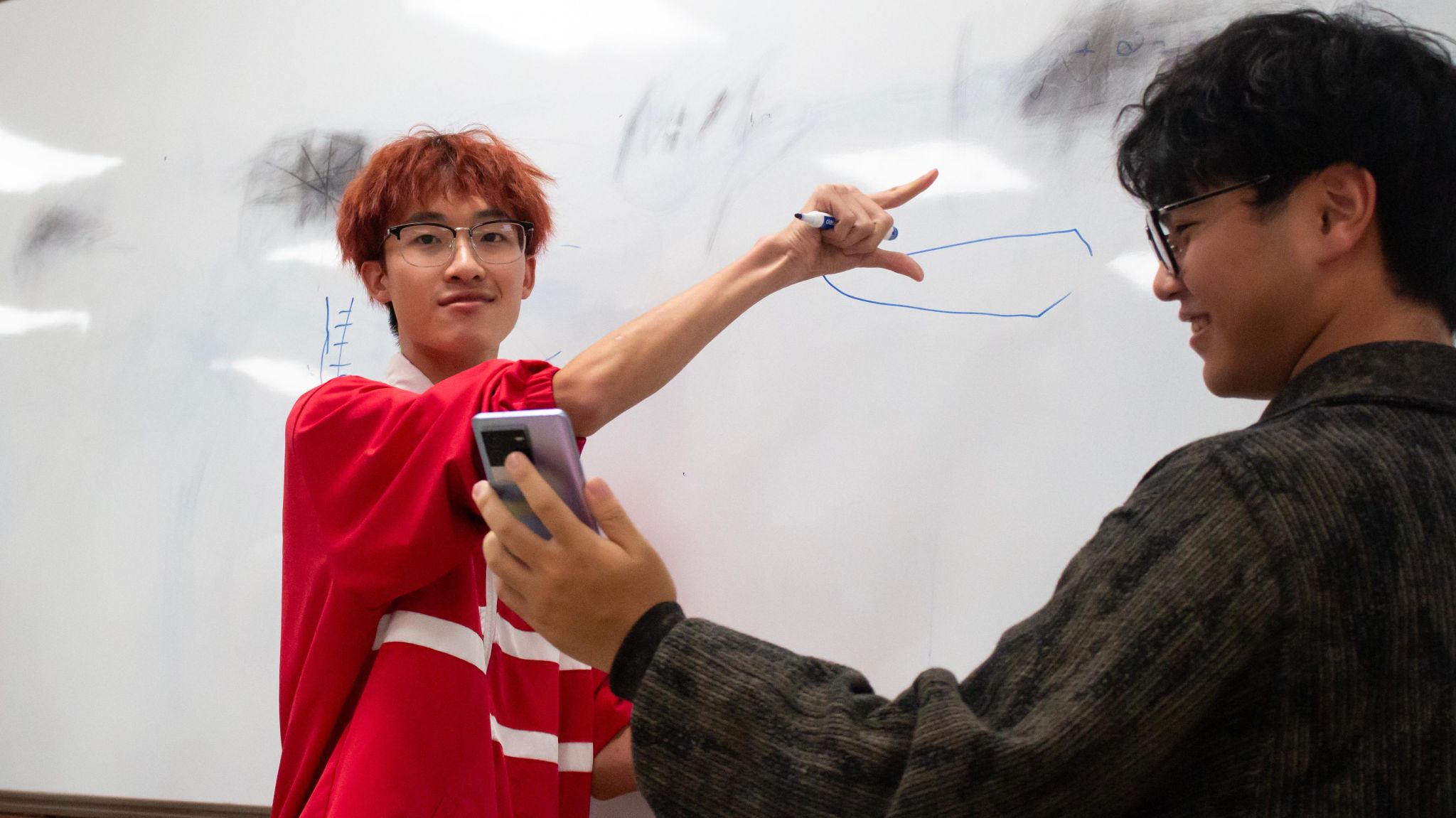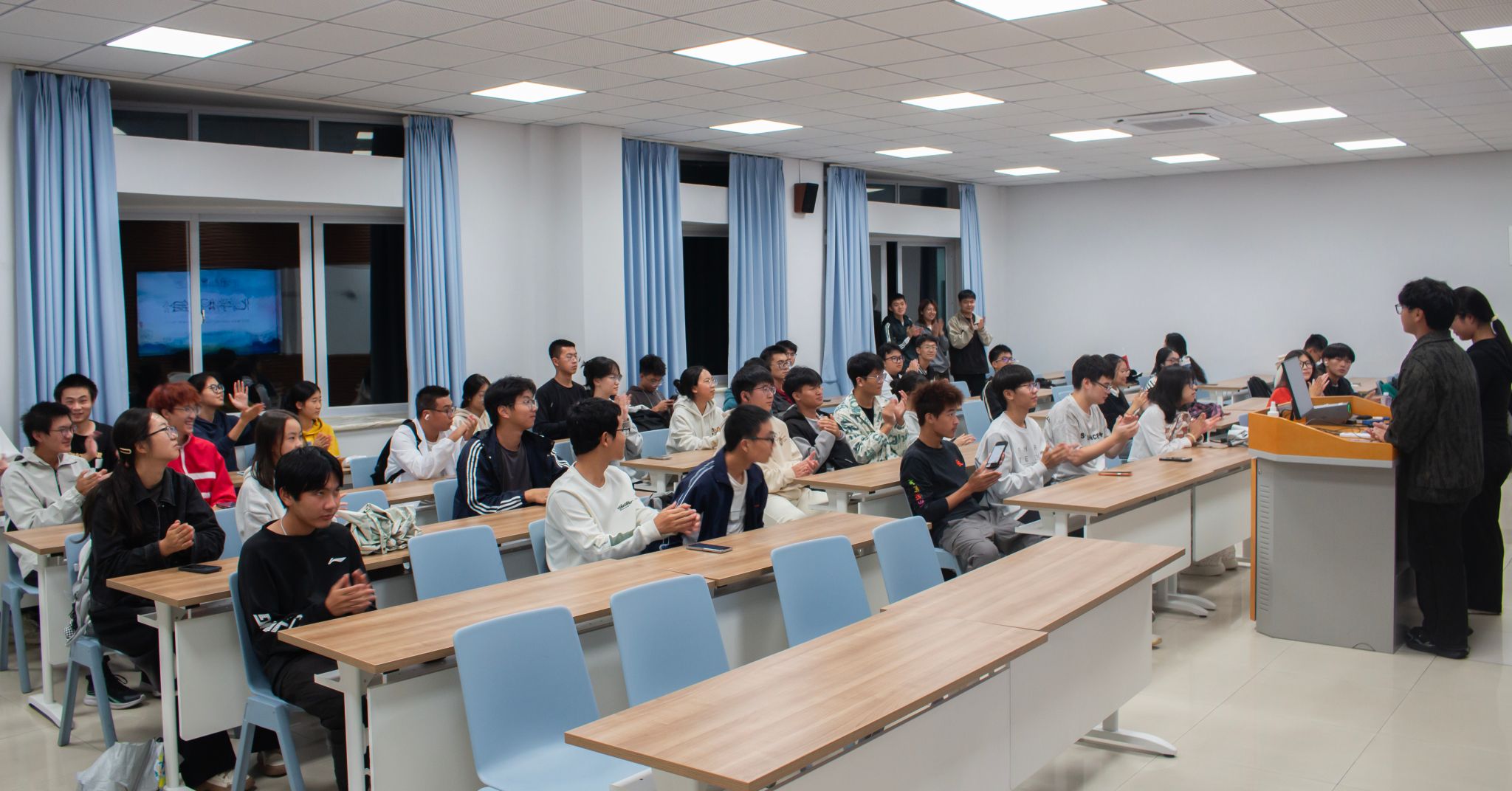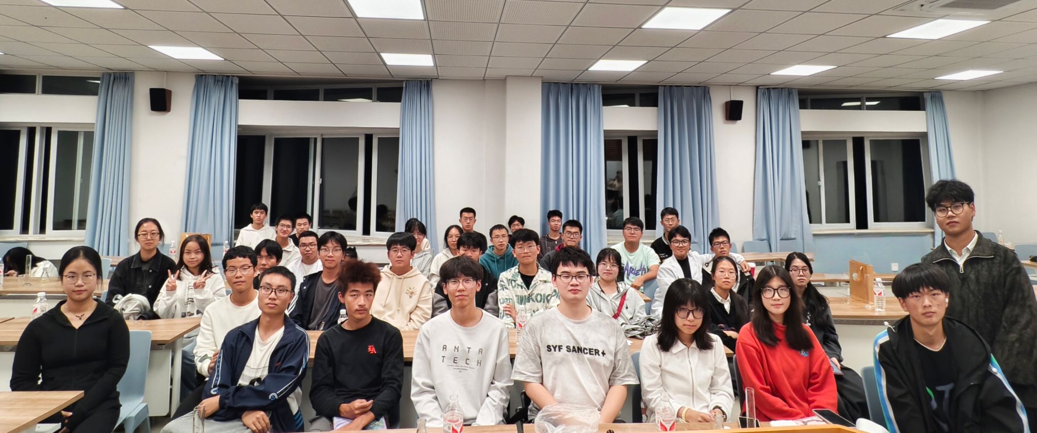 随着活动的进行,同学们越发投入其中:在你画我猜环节,同学们纷纷化为“灵魂画手”,一个个实验室常见的试剂仪器,或抽象或写实地跃然于黑板上,难记难写的名称从此深深烙印在同学们的脑海中……接下来的飞花令更是调动同学们的大脑飞速运转,来了一场诗意与化学的碰撞,诗里寻化,学蕴诗中。正话反说环节中,同学们的反应力超群,五支队伍竞争也逐渐激烈。