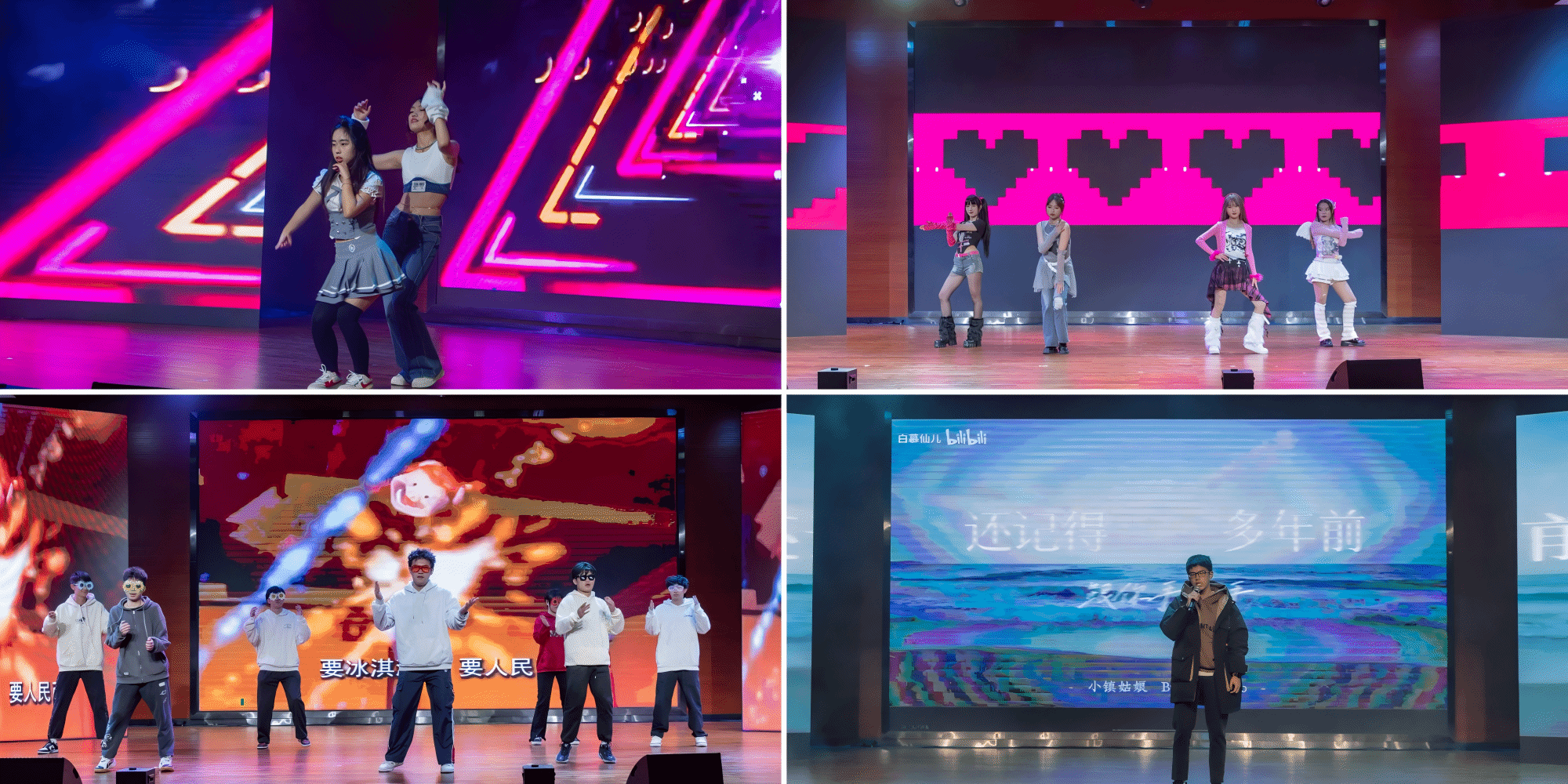 在第二篇章“化舞新韵”舞蹈节目里,化学2023-01班郭芃墨和高分子2024-02班高婧轩共同带来舞蹈《pingpong》,舞步节奏时急时缓,扣人心弦;兄弟公司员工会文静、叶牧、李雨阳、李红兴、刘丁荣带来舞蹈《tell me》,像青春的战歌,激荡着内心的热情与力量;高分子2024-01班徐乐尘带来歌曲《小镇姑娘》,就像一首悠扬的田园诗;高分子2024-01班的同学们表演《童年舞蹈串烧》,温馨的歌曲伴着欢快的舞蹈,青春飞扬、活力绽放。