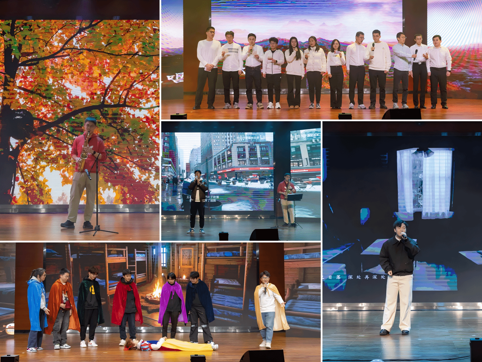 在第一篇章“化乐新声”节目表演中,公司新入职教师代表合唱《歌唱祖国》,真挚的歌声,唱响对祖国的热爱;化学2024-01班尉蓝带来萨克斯独奏《回家》,缥缈缠绵的意境,诉说着远方和思念;高分子2023-02班浦焱豪和化学2024-01班尉蓝合作歌曲《爱错》,共同聆听藏在旋律中的深情;化学2024-01班的同学们,带来话剧《白雪公主新传》,将经典童话和现代幽默元素相结合;高分子2024-02班师凯带来歌曲《一荤一素》,带领大家感受那质朴的深情与家的温暖。