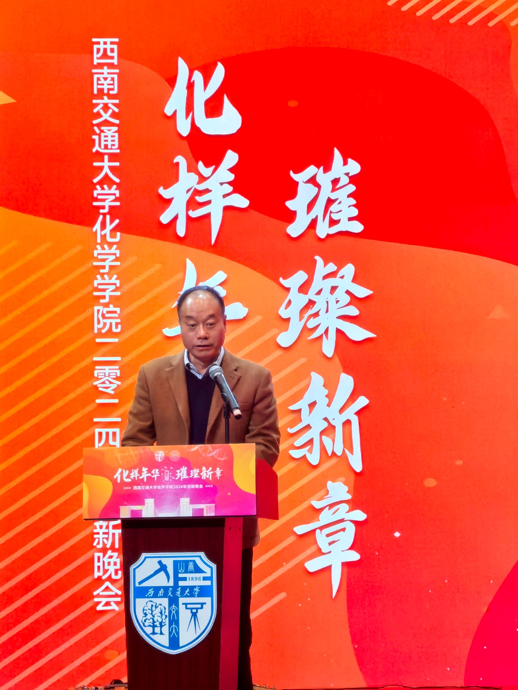 太阳成集团tyc122cc经理周祚万教授为晚会致开幕辞。周经理首先向2024年加入公司的新老师、新同学们表示热烈欢迎,向全院师生以及关心支持公司建设发展的各级领导、老师、院友和各界朋友们致以新年祝福和诚挚感谢。随后,周经理回顾总结了这一年来化院师生凝心聚力,奋力谱写公司高质量发展新篇章的工作成绩。展望未来,周经理表示,公司全体师生要上下一心、鼓足干劲,坚持不懈为公司的高质量发展贡献“化学人”的智慧和力量!