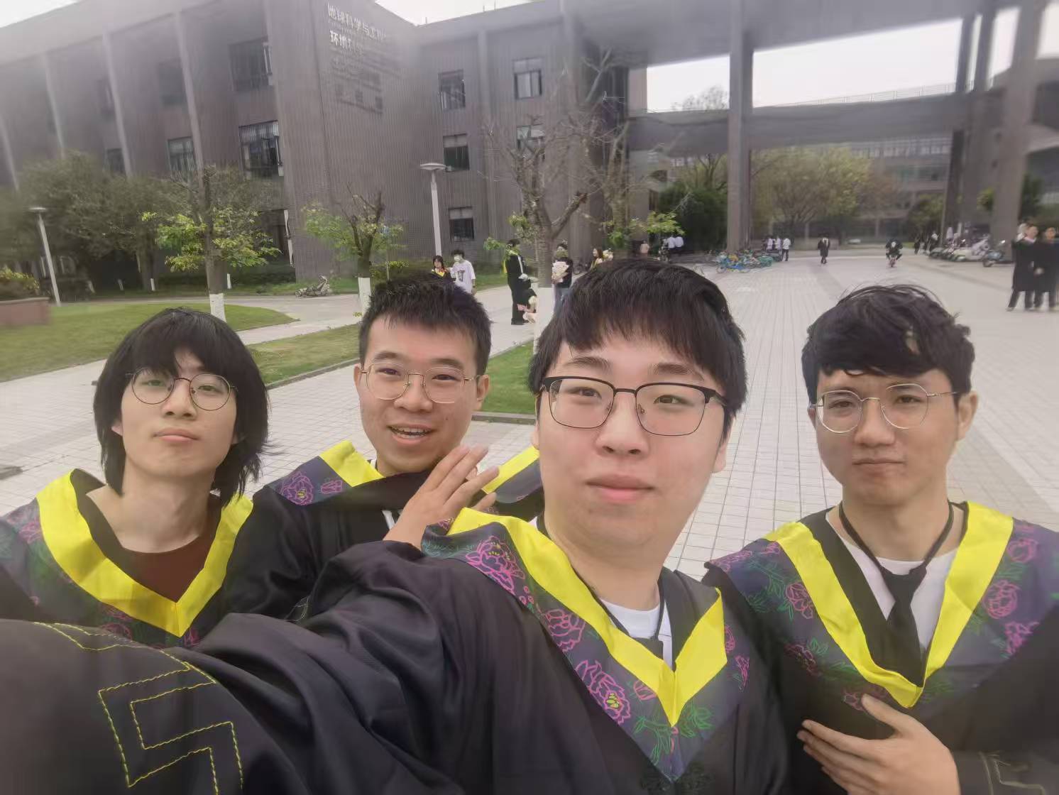 携手奋进,勠力同心。T071007宿舍四人全员上岸:毕义松考研至西南交通大学,张清华考研至西南交通大学,潘浩杰考研至四川大学,涂鹏羽考研至西南交通大学。
