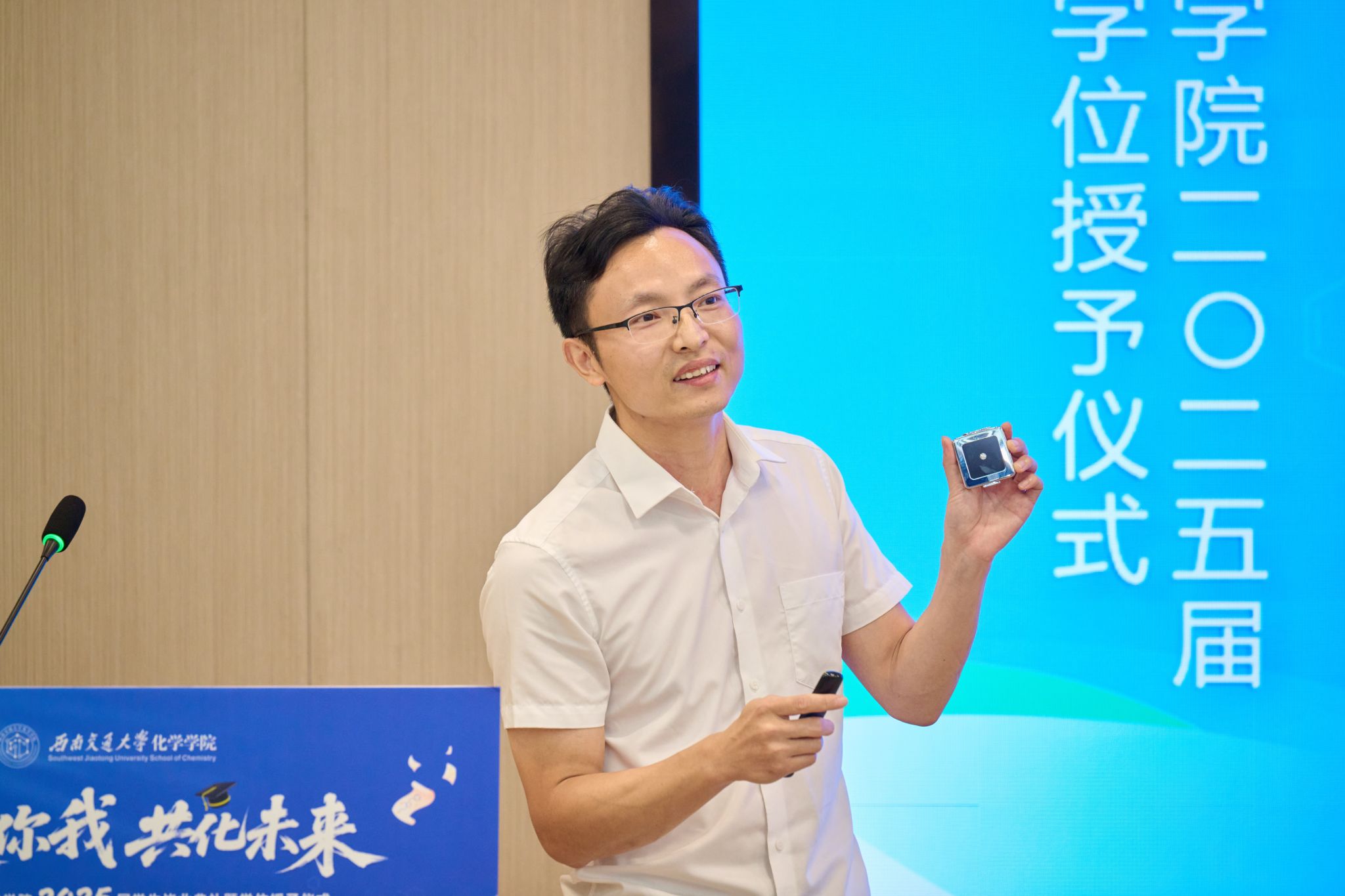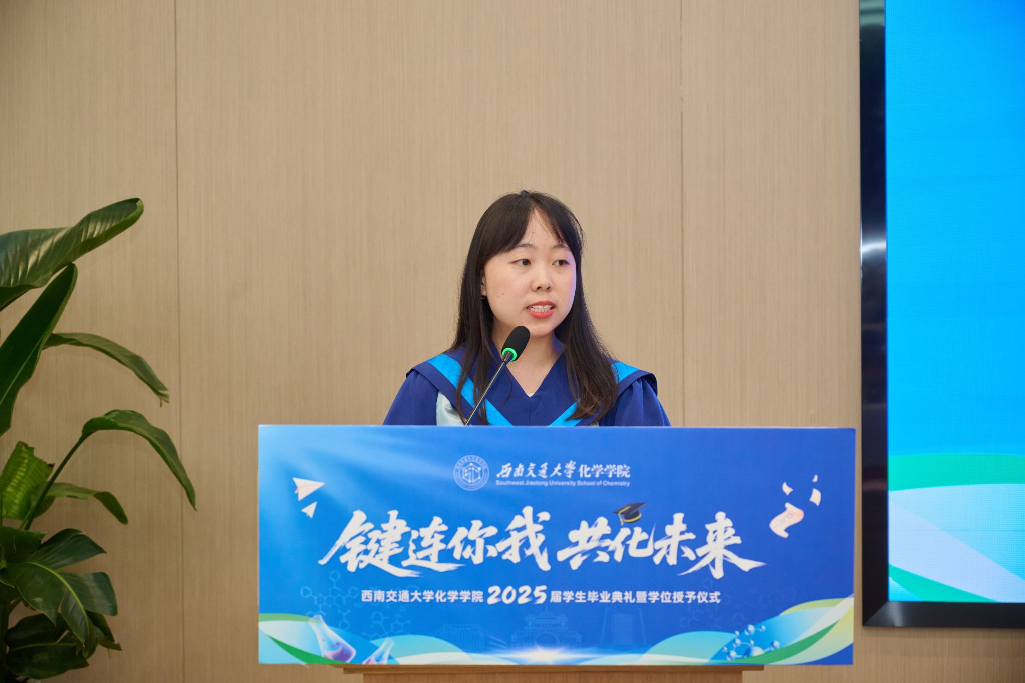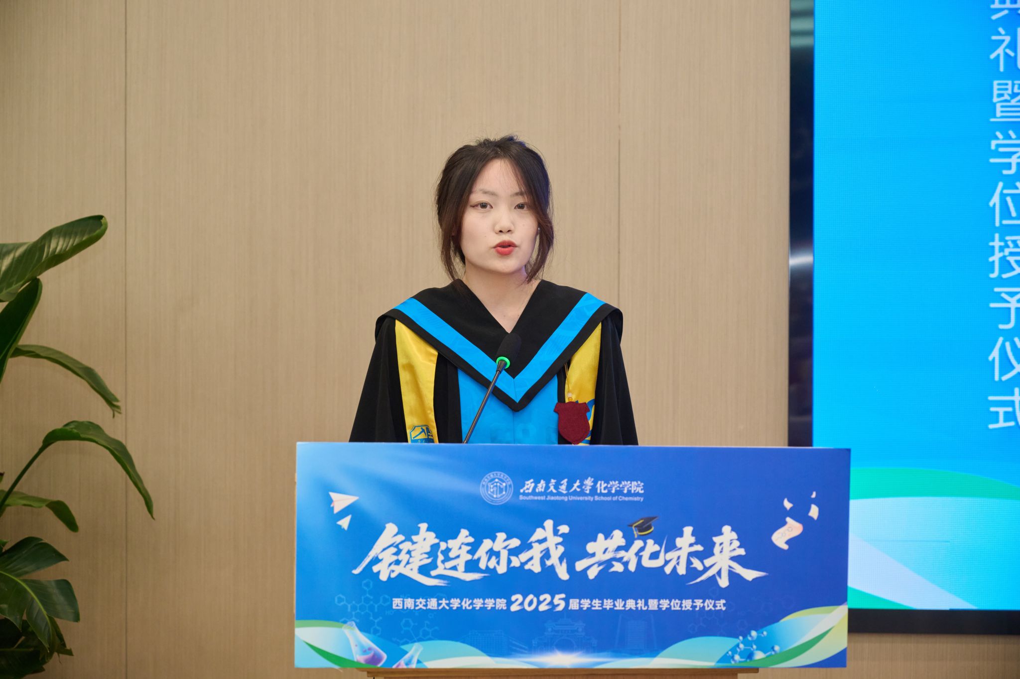 此次典礼还特别邀请了员工代表、电子科技大学材料与能源公司教授、博士生导师简贤发言。简贤员工于2003年至2013年(本硕博)就读于高分子材料与工程方向,他分享了自己的求学经历和职业发展历程,鼓励毕业生们要珍惜时光,不断进取,为国家和社会的繁荣发展贡献自己的力量。他的发言赢得了现场师生的热烈掌声。