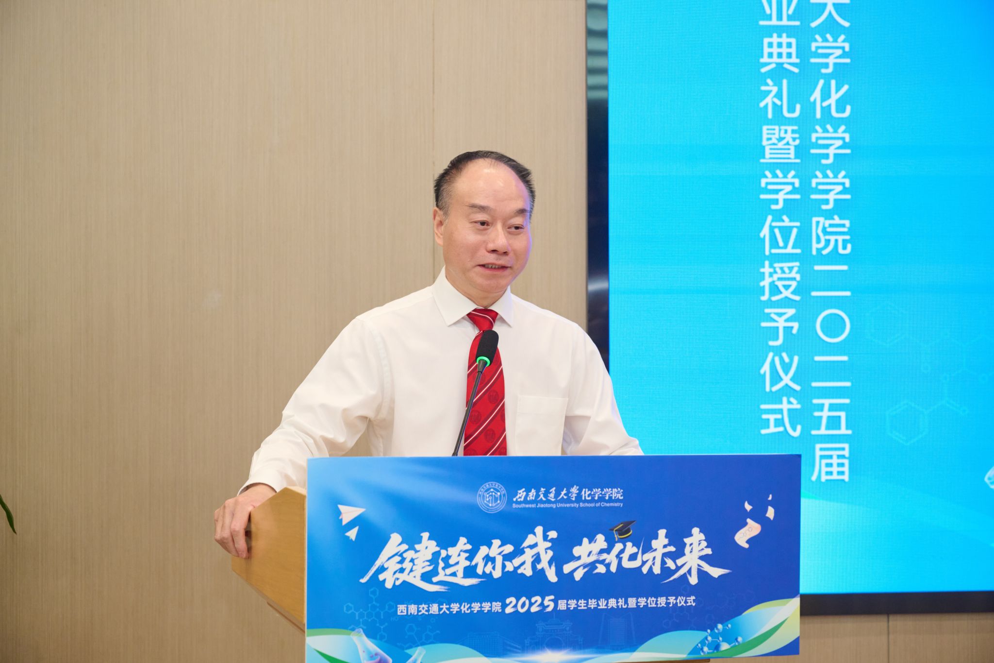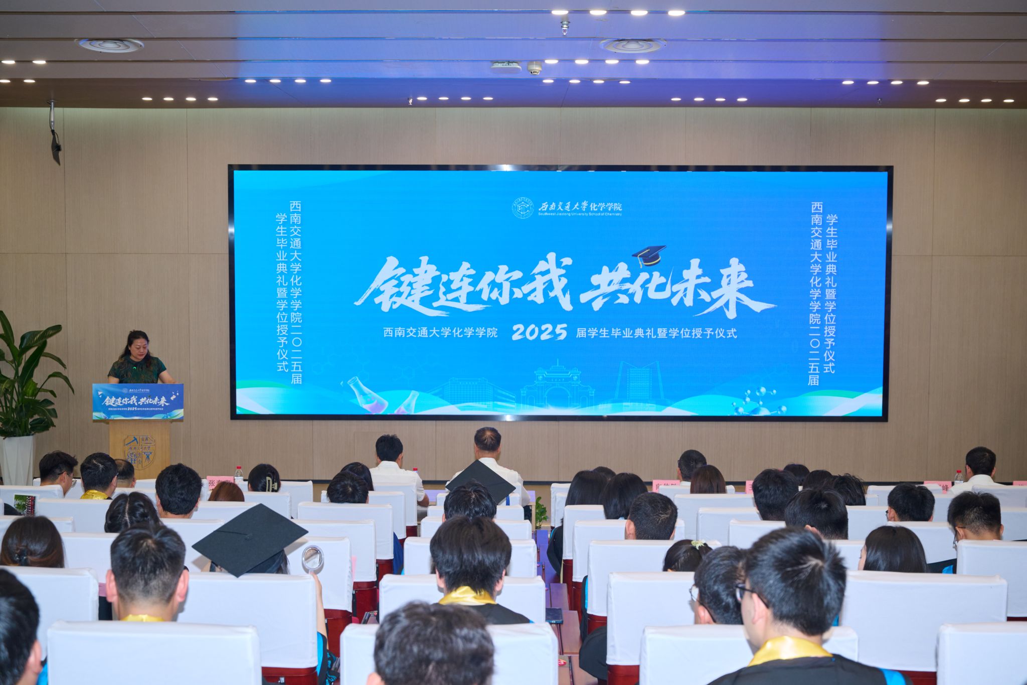 6月20日下午,2025届员工毕业典礼暨学位授予仪式在犀浦校区二号报告厅隆重举行。化学公司党委书记向仲敏,经理周祚万,党委副书记张春燕,副经理王雅雯,员工代表、电子科技大学材料与能源公司教授简贤,信息委员郑剑峰,教学督导组组长、退休教师管棣,高分子系主任杨静晖、副主任高霞,合成化学系主任彭羽,应用化学系主任王萃娟,公共化学教学部主任张颜,本科2021级员工班导师,专业课教师,员工工作组全体辅导员,全体本科毕业生、研究生毕业生代表及员工家长出席典礼。典礼由张春燕副书记主持。