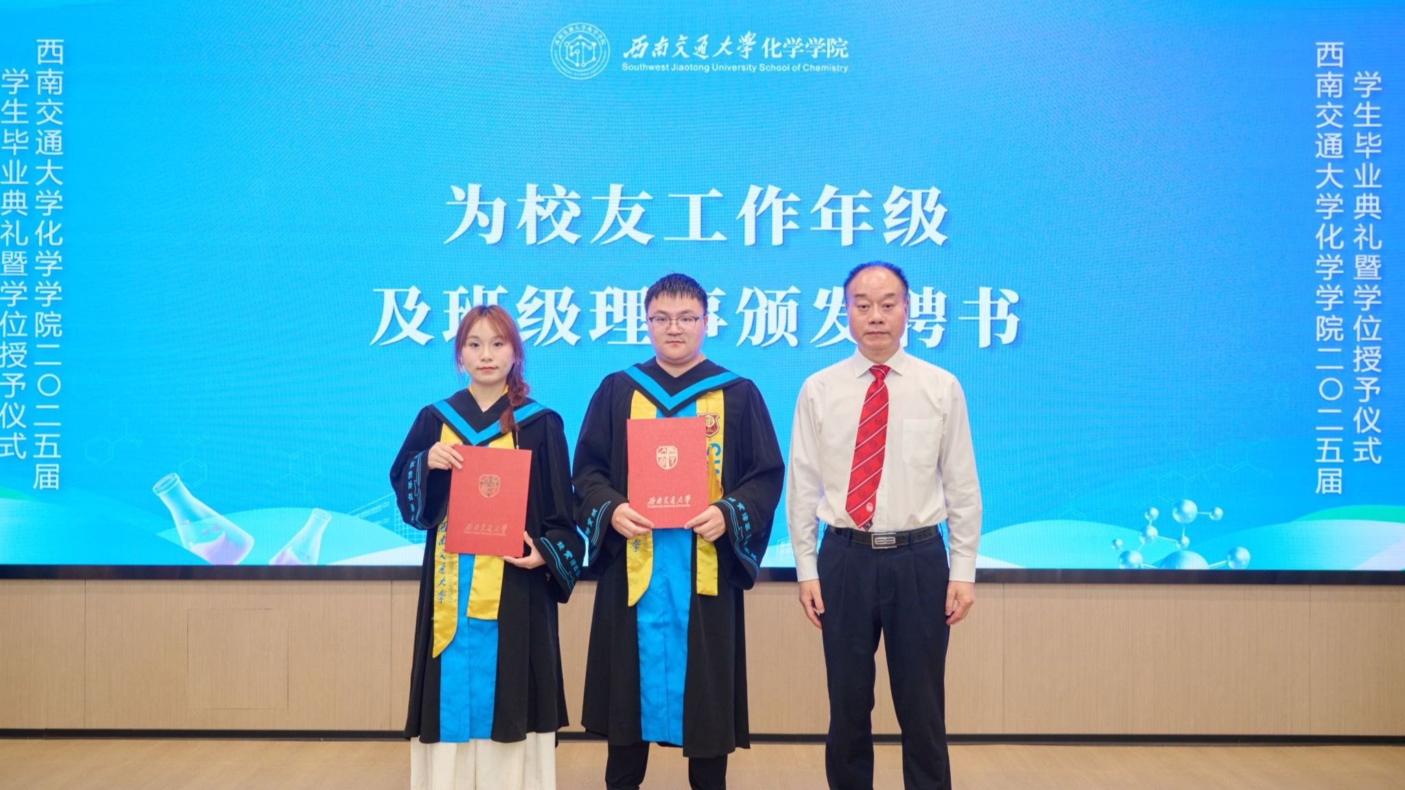 王雅雯副经理、郑剑峰信息委员为西南交通大学优秀毕业生颁奖。