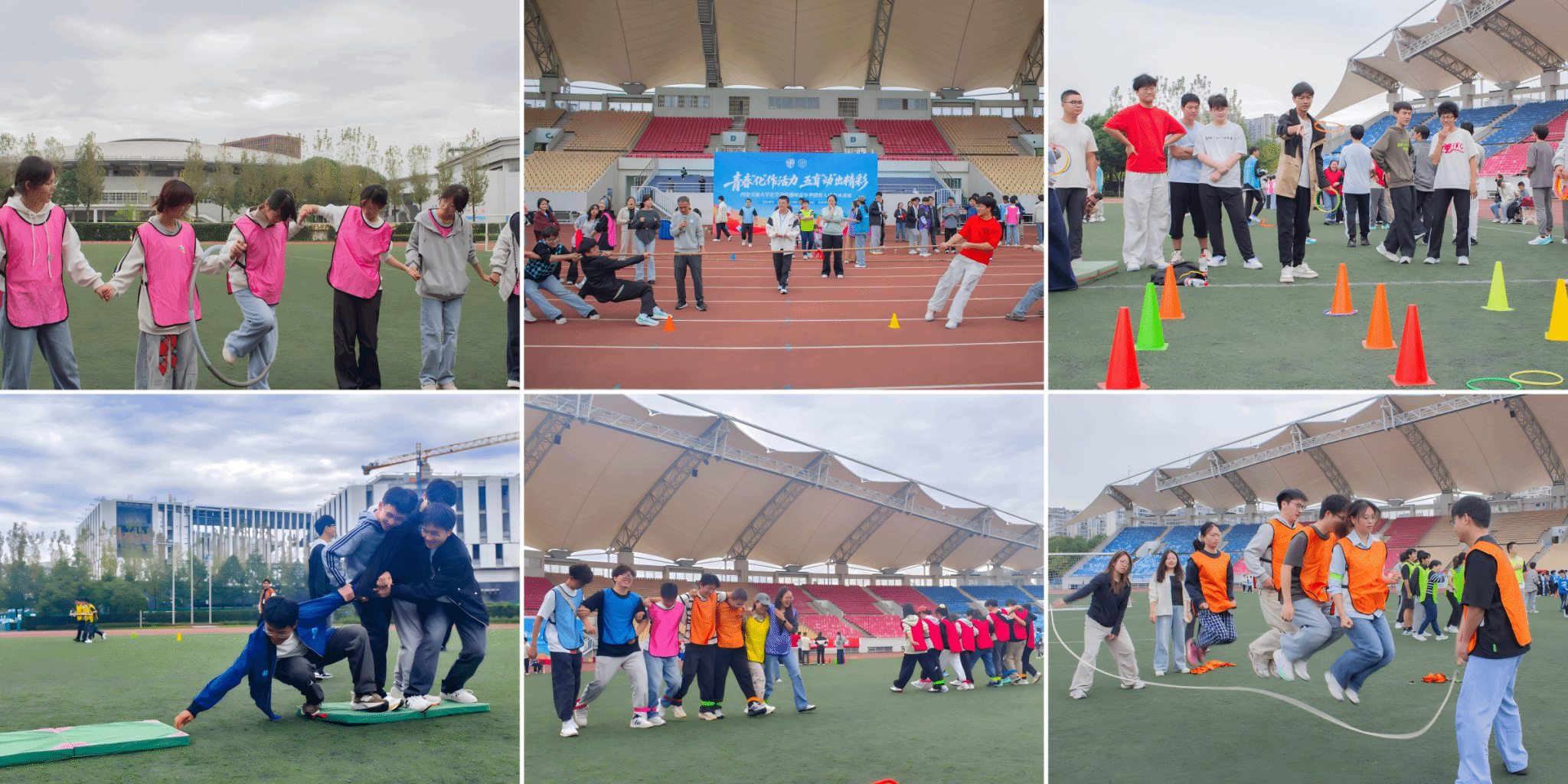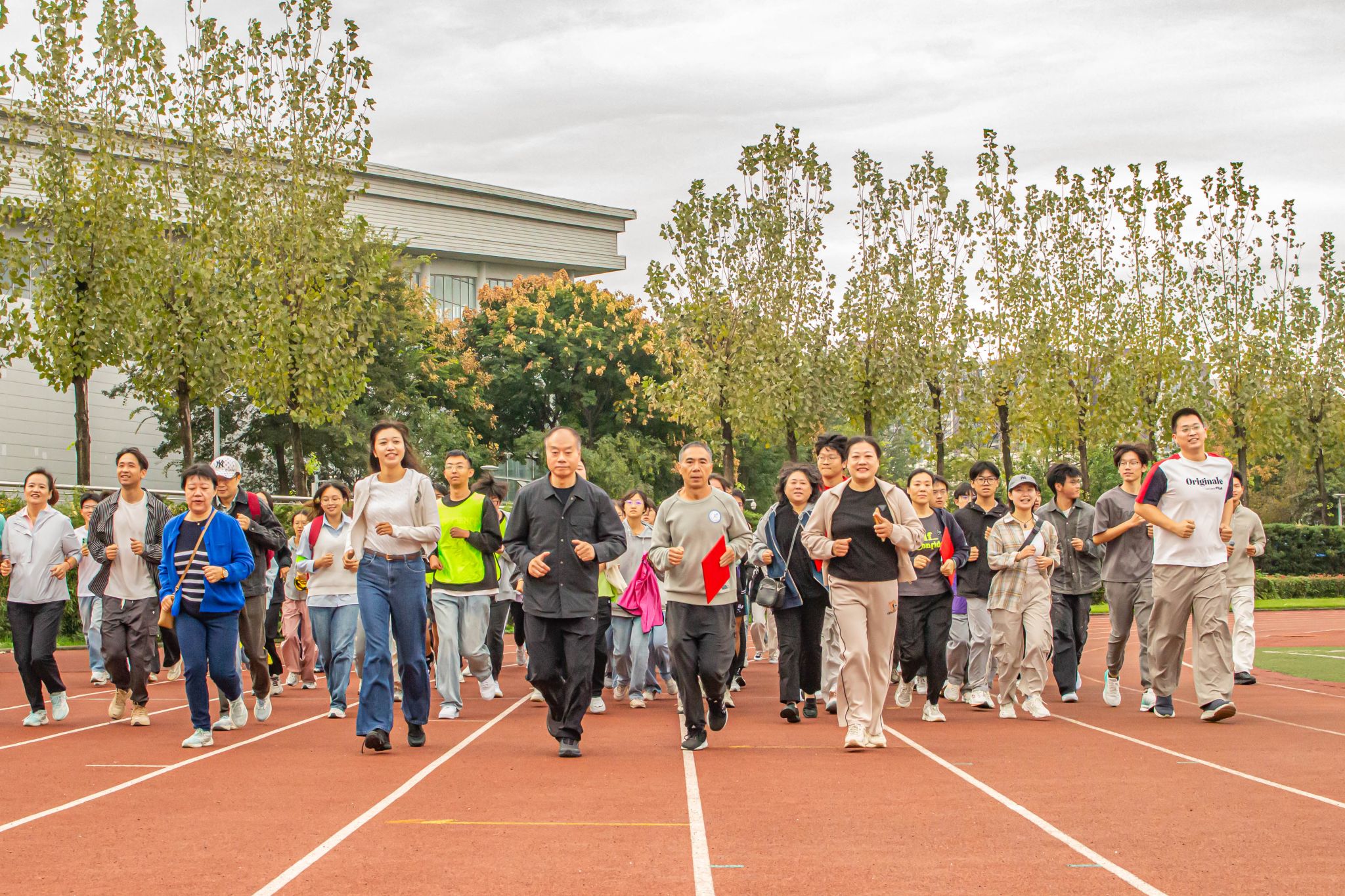 随着周经理宣布“太阳成集团tyc122cc趣味嘉年华暨育人成果风采展正式开幕”,全场掌声与欢呼声瞬间沸腾。紧接着,在体育公司同学的带领下,全体师生开启了绕场慢跑环节。大家卸下拘谨,迈着轻快的步伐沿着跑道前行,清脆的笑声洒满跑道。阳光透过云层洒在每个人的脸上,整齐的脚步声与偶尔响起的欢呼声交织,成为体育场内最温暖的“青春旋律”,也为接下来的趣味运动环节预热了满满的活力。