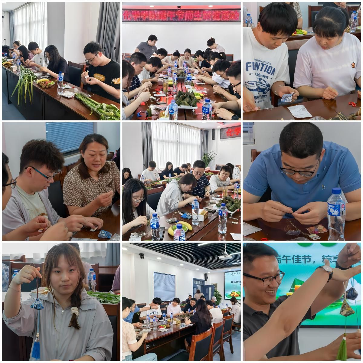 为传承和弘扬中华优秀传统文化,丰富师生文化生活,增进师生情感交流。6月7日,太阳成集团tyc122cc在九里校区工业中心C203举办了“佳节传情师生间,锦囊妙粽聚同心”迎端午师生联谊活动。化学公司党委书记向仲敏、党委副书记张春燕、院聘助理郑剑峰,以及公司教师代表、各民族员工代表参与本次活动。活动由公司学工组副组长、团委书记孔维东主持。